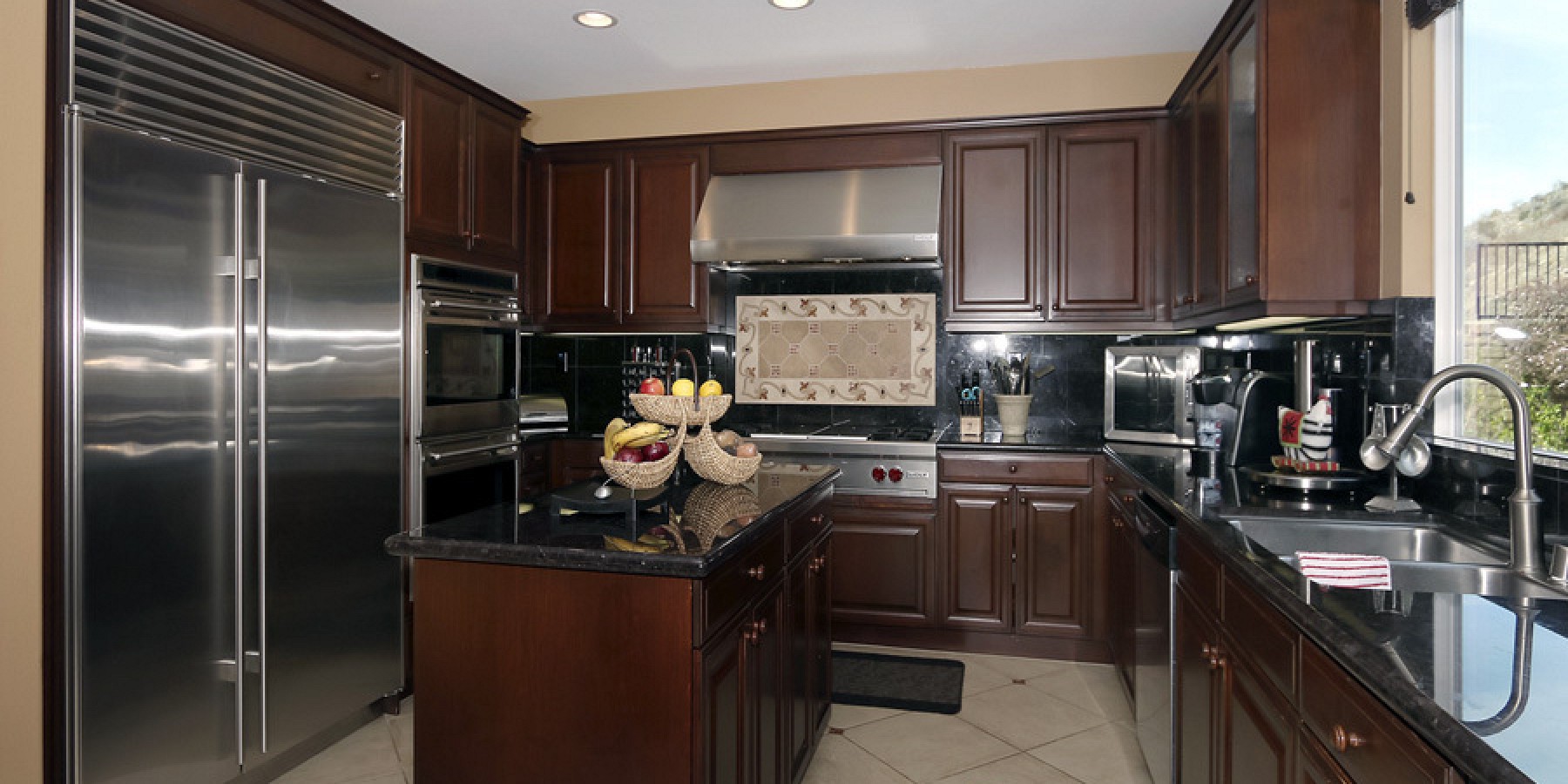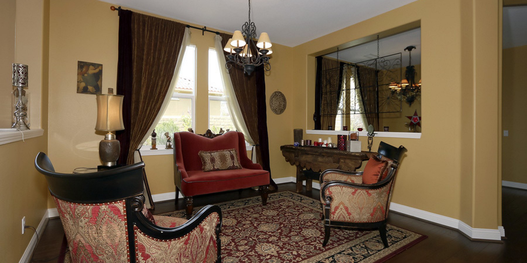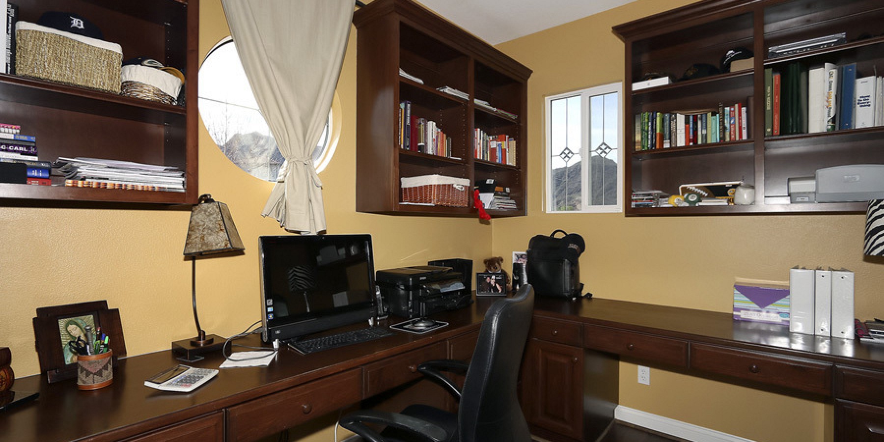 The hills are Southern California,the breezes come from the ocean,but this home has a distinct European flavor.As soon as you open the deep red door,with leaded glass inserts,and pass through the arches into the sitting room, it’s easy to imagine yourself in Barcelona.More arches lead to a dining room,library/office, with hardwood floors,and spectacular mountain views.In fact,there isn’t a window in this house that doesn’t frame one or two mountain ranges.An open kitchen/family room boasts restaurant-style Wolf appliances,dark walnut cabinets,and a striking Mediterranean fireplace made of poured concrete.At the top of the winding staircase is another alcove/office,outfitted with built-in shelves, desk and cupboards.The spacious master suite,with its lovely fireplace and two walk-in closets,looks out at another hill dotted with oak trees.The adjoining bath has a large soaking tub,and the view from the huge cut-glass window offers the most stunning scene of all – hills dotted with rocky peaks.A home theater,laundry room,three bedrooms,and two additional full baths complete the second level.A tasteful hand with landscaping is evident in the pool and spa area:graceful olive trees,a pergola bordered by columns,and covered with fragrant flowers.Again,it’s time to fantasize that perhaps you aren’t dreaming,but really having tapas in your villa in the Pyrenees Mountains.If you’re lucky,you won’t have to wake up!