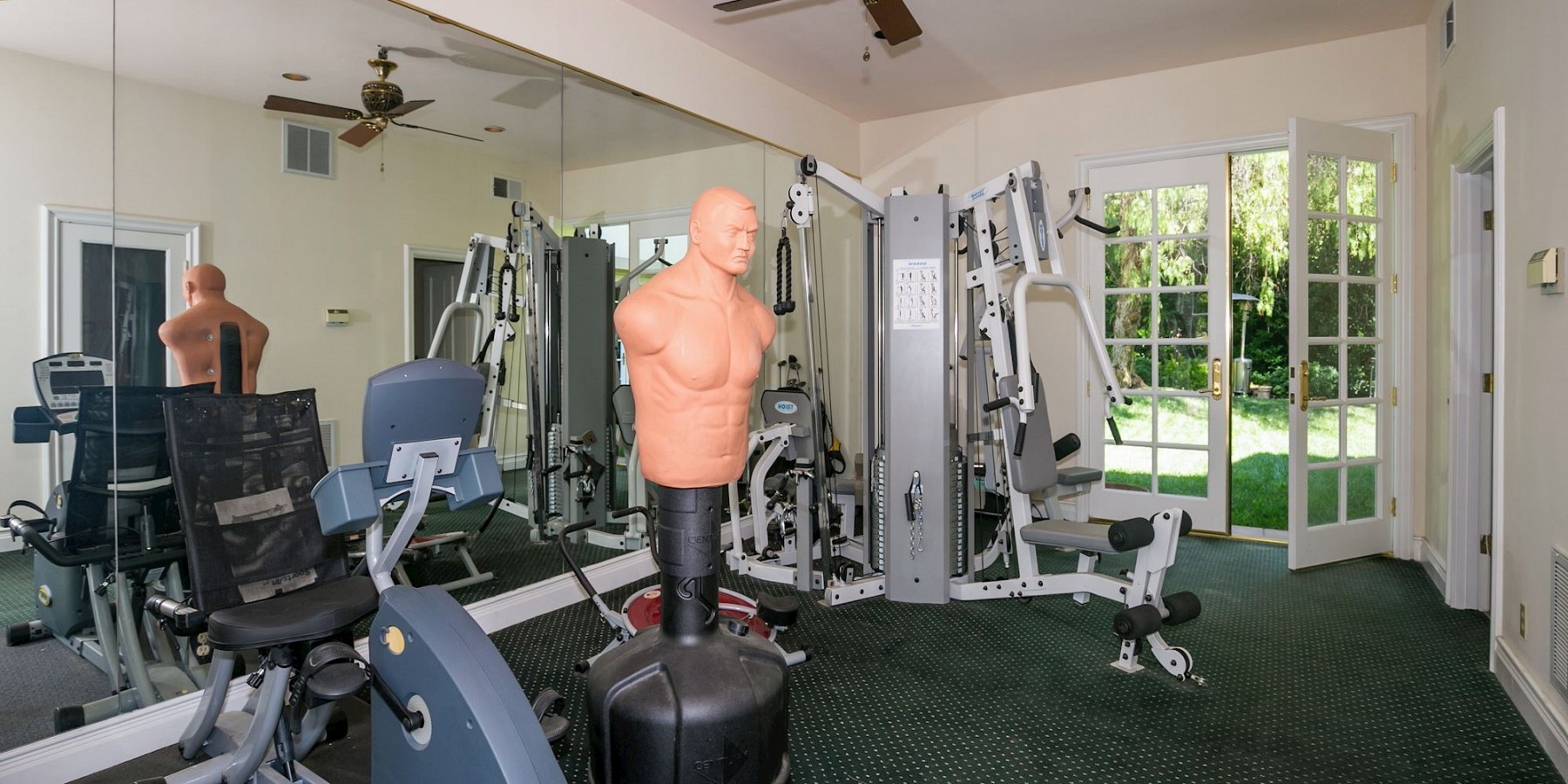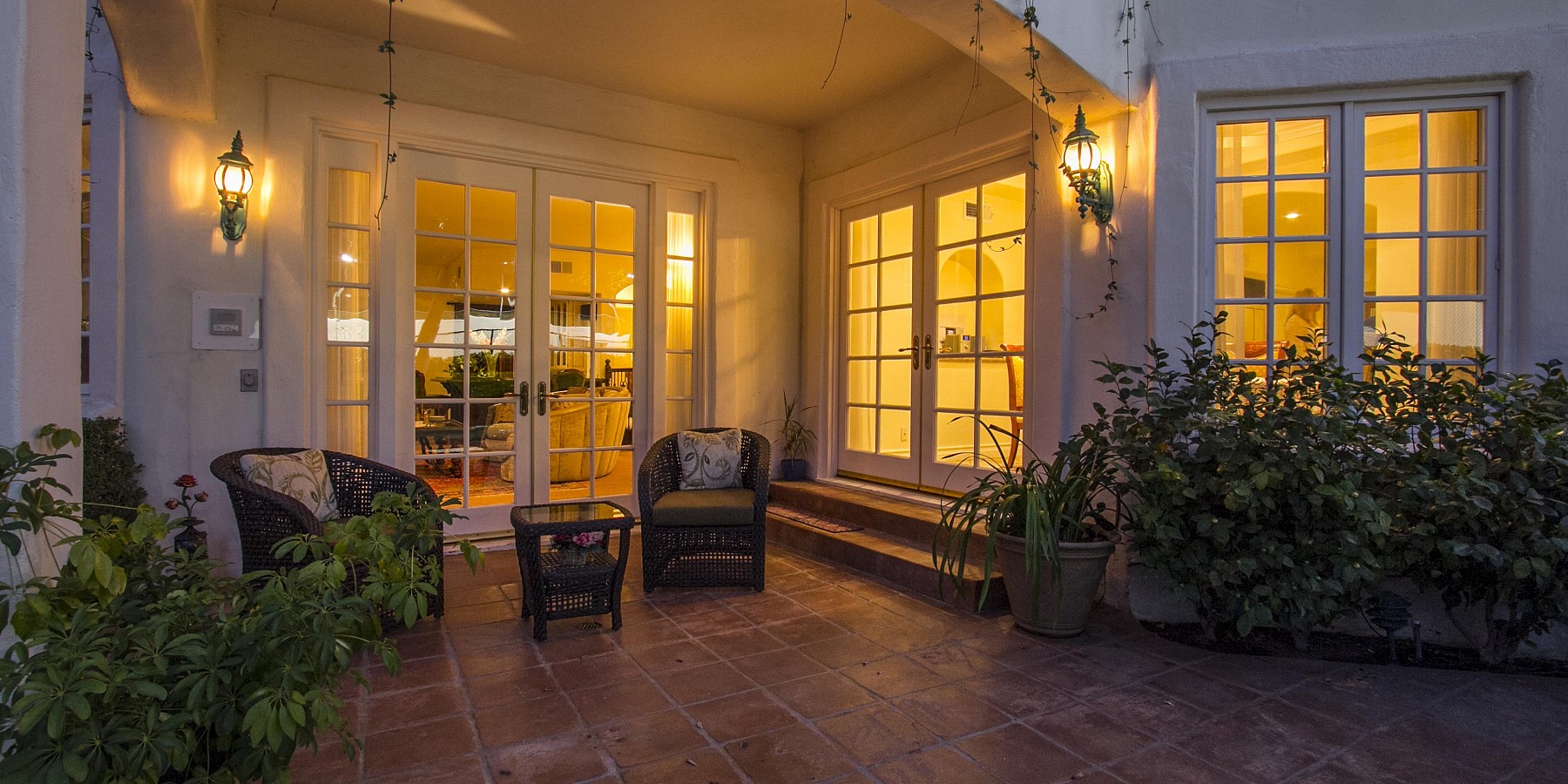 The views from every room are works of art themselves: the family room overlooking the pool and spa; a patio off the dining room, facing tennis courts and verdant hills, the elegant office with custom cabinetry. The architect seems to have allowed for a myriad of individual tastes, whether it be a sauna to end a long day, a gym to begin a morning workout, or a remodeled chef’s kitchen to whip up a Thanksgiving feast. Guests will never complain, as each room on the second level has an ensuite bath, as well as in the first-floor bedroom/maid’s quarters. And if you need more room for family and friends, a charming casita on the one-acre property, surrounded by lush foliage, affords just the right amount of privacy. Three fireplaces, both wood and gas, guarantee winter relaxation in both the living areas and master bedroom. Of course, the master suite lacks nothing, with outsized closets, walnut floors, and dazzling, designer bath. Its adjoining patio offers an intimate respite, where the only sounds are the birds and the waterfall spilling into the pool.