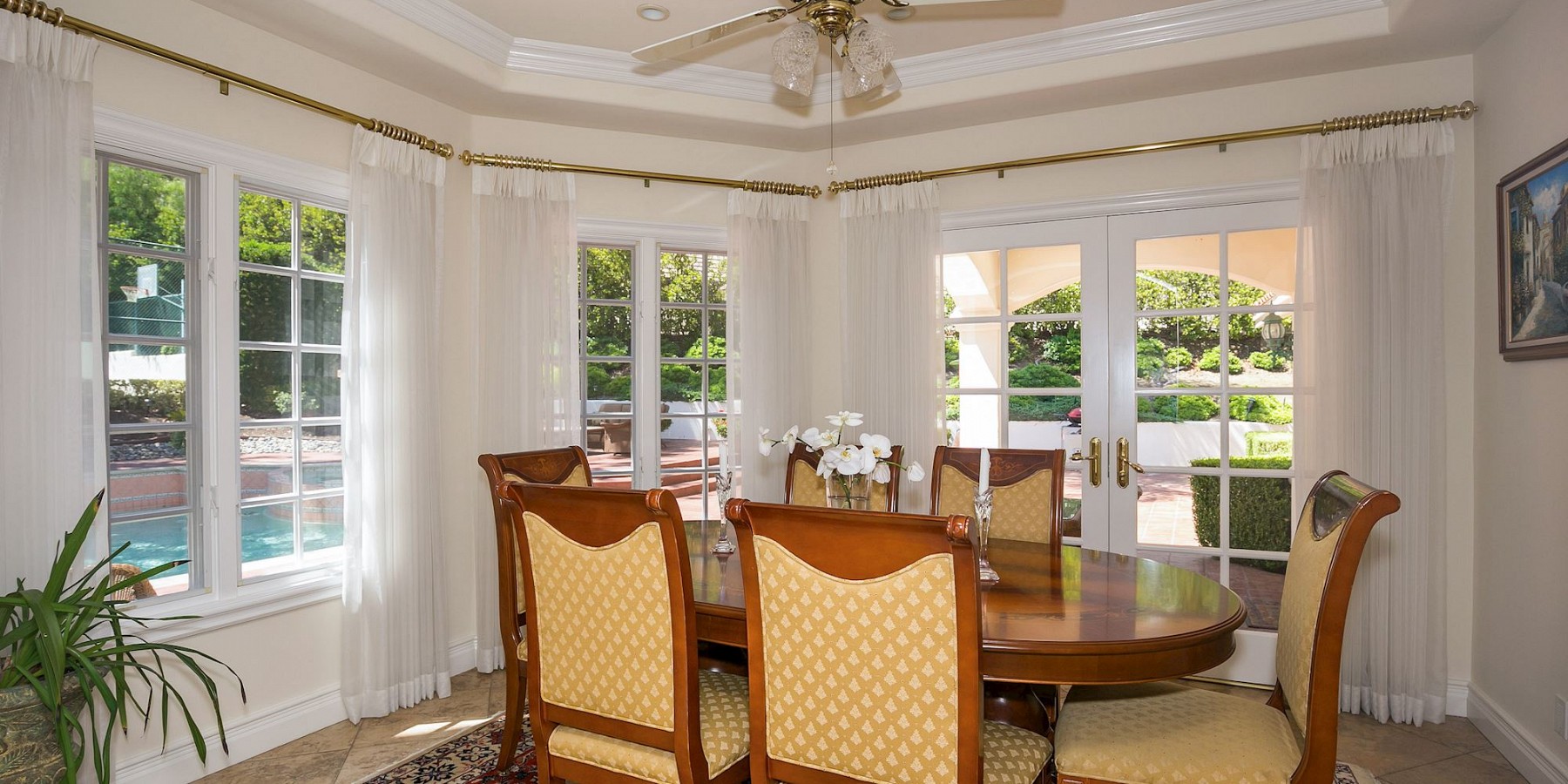 These are remarkable words by the brilliant writer and statesman that are just as relevant today as they were in the 18th century. And they are especially fitting when used as a backdrop to this property, an estate of both grace and elegance. Just driving through the iron gates, down the winding road, mountains looming in the background, and your heart will begin to sing. For this is more than a 7 bedroom, 8 ½ bath property, with its pristine tennis court, saltwater pool, and entry’s soaring ceiling and onyx floors……this is a home that will enable worldly cares to slip away – for each inch of the 7,400 square feet is designed to please the eye, refresh the body, and nourish the spirit.