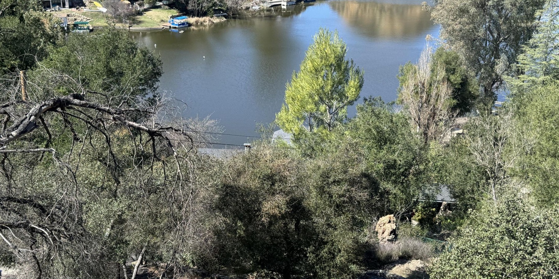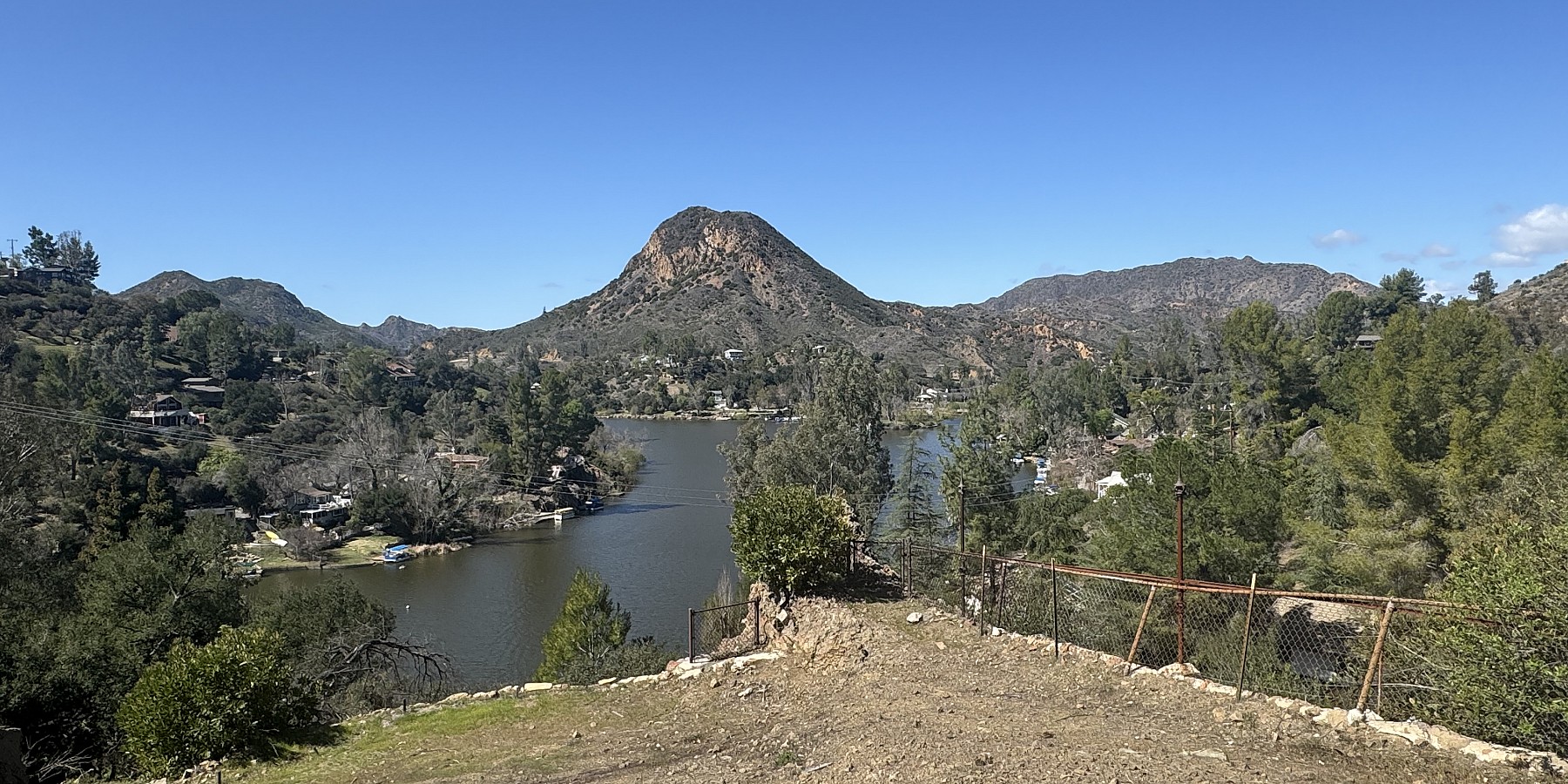 The Preeminent lot on Malibou Lake. Towering and panoramic views overlooking Malibou Lake and Sugarloaf Mountain as well as the rocky crags of Malibu Creek State Park and Triunfo Creek as it meanders through the park and past the Old Mash TV film site. This 3/4 acre is perched like no other and captures the awe-inspiring views. Plenty of flat building areas along with an existing approx 800 sq ft structure that remained. The ultimate in privacy and serenity coupled with an incredible community. There is a private dock site attached with this parcel for your year-round water fun including: paddle boarding, swimming, kayaking, fishing and so much more. Besides the private forty-acre lake, the community provides a beautiful clubhouse, pool, tennis, pickleball, and year-round events, parties and live music on the lake that can keep your social calendar full. In all of Southern California, one would be hard pressed to find a location that offers such a lifestyle. Situated within the Lass Virgenes School District, minutes from the 101 fwy and most conveniences and a short jaunt over to the ocean. Yes, Malibou Lake is spelled differently than Malibu because it is different, come find out why!