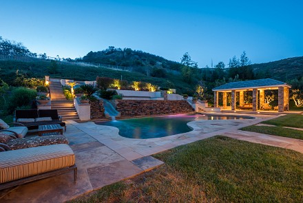 Certainly the crown jewel in the exclusive gated enclave of Hidden Park Estates. Perched on over 2 acres with tremendous mountain views, privacy and a back yard setting sure to host your reverie and revelry. Custom solar saltwater pebble tech pool with waterfall and slide, covered patio w/ fireplace, outdoor kitchen, surround sound, sport court, cabanas w/fire pit and a super large lawn area for all your sporting fun. The interior appointments rock. Gourmet center island kitchen opens to a large family room. Gorgeous wood, stone and marble flooring throughout the lower level. Lower level rooms include bed, bath, powder, formal dining, living and study plus a permitted oversized game/rec room. 3 beds and en-suite baths up, along with a gorgeous master retreat w/customized walk in, and large sun deck to behold the beautiful natural surroundings. Truly a lifestyle home not often found but always desired.