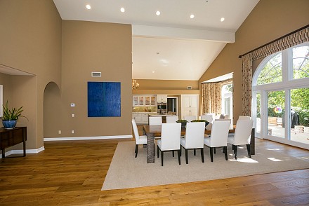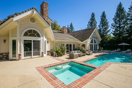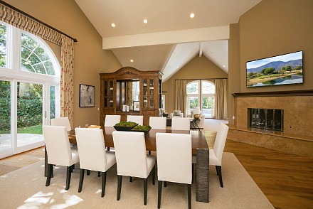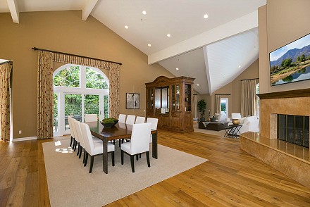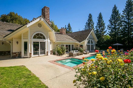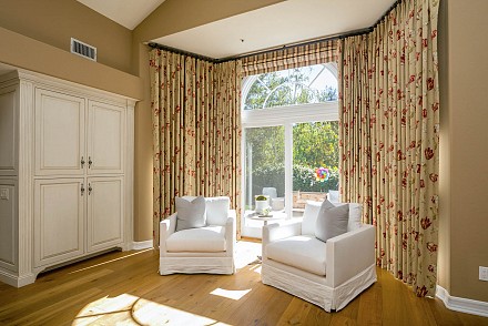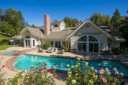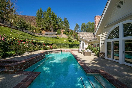 Outside is a pool and spa, spectacular rose garden in full bloom, and hedges, with wrought iron fencing behind them. The property backs into open space, has solar power, and is on a cul de sac, with a half dozen sycamore trees encompassing this grand estate. Residents may also be tempted to join the 27-hole champion golf course. Prepare to be completely enchanted