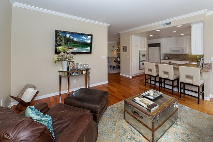 Elegance: Here is where the townhome comes in – two-bedrooms, 2 ½ baths, over 19000 sq. ft. With its graceful entry and front door surrounded by glass insets, you have a subtle hint of what is found inside.