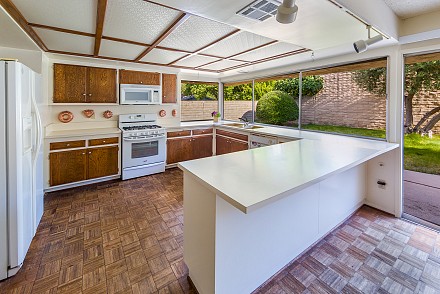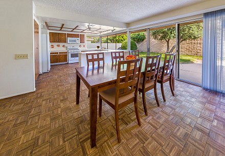 Single story original First Neighborhood Gem. Superb Cul-de-sac location with greenbelt. Private backyard. 4 Beds, 2 baths, living room with soaring ceiling and fireplace. Courtyard in the center. Create your own wonderful vibe!
