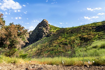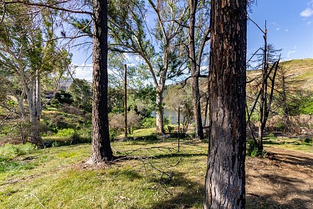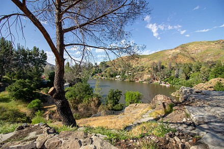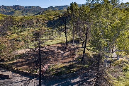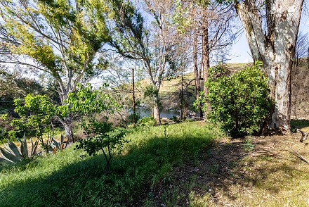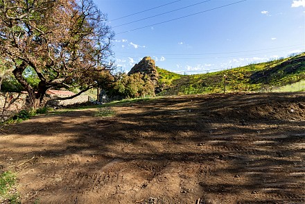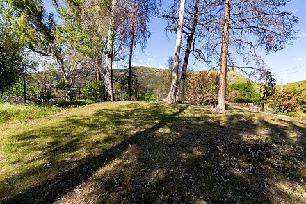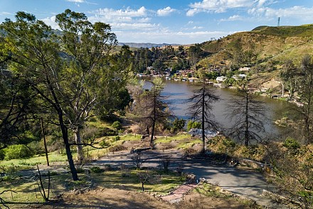 Stunning lot with commanding lake and mountain views. complete privacy at end of street above the Malibou Lake dam and backing Malibu Creek State Park. Gorgeous lake and mountain views. Stunning rock formations right off the Easterly side. Private dock site. Nearly 3/4 acres on large knoll with mature trees and vintage rock wall highlighting perimeter of street. Fruit trees; figs, pomegranate and more. Members at the lake enjoy year round water fun from boating, sailing, fishing, swimming and more. Community pool, tennis, clubhouse and more. All utilities present. contact regional planning for expedited Woolsey fire rebuild. Unlike any other lot at lake bordering the state park, end of street and lake rights. It's a must see for all who seek a special way of life and want to create their own version of paradise. (photos are of the home that used to be there and inspiration for another possible home)