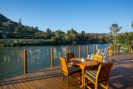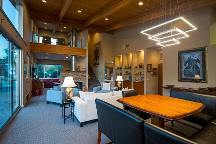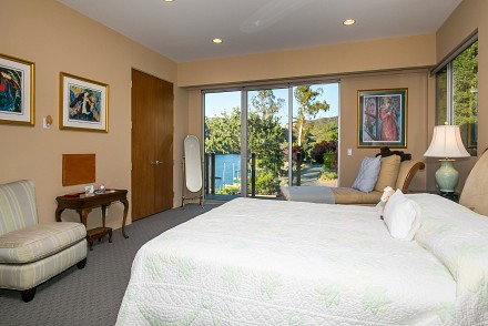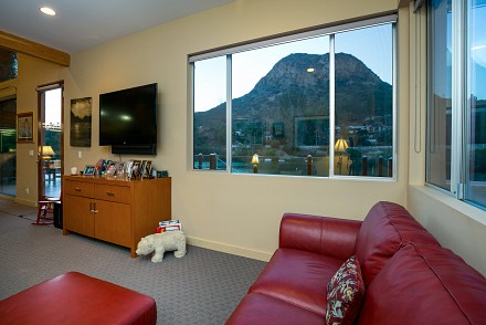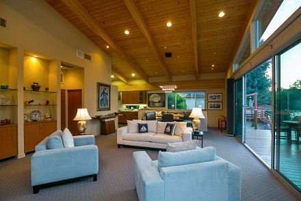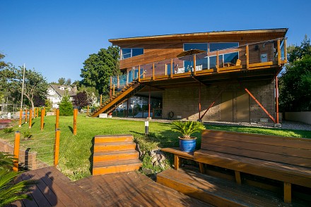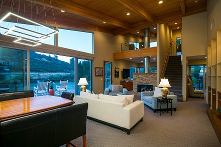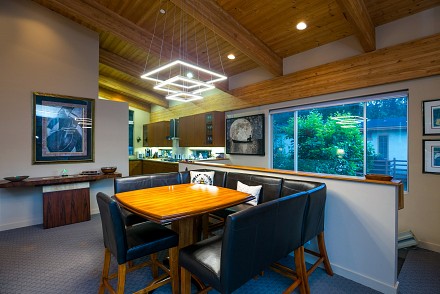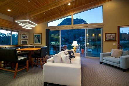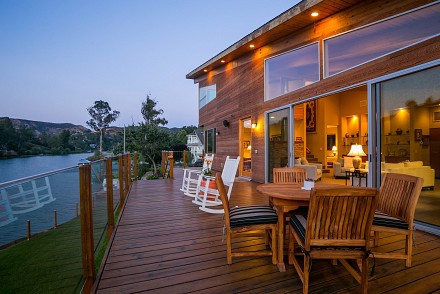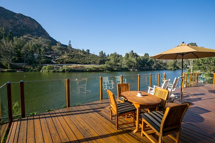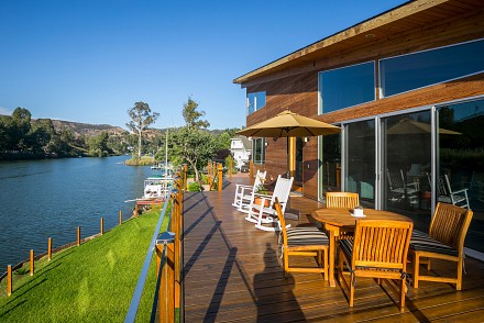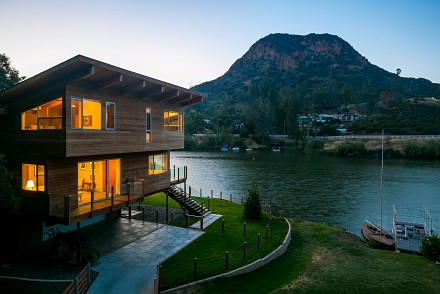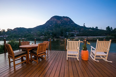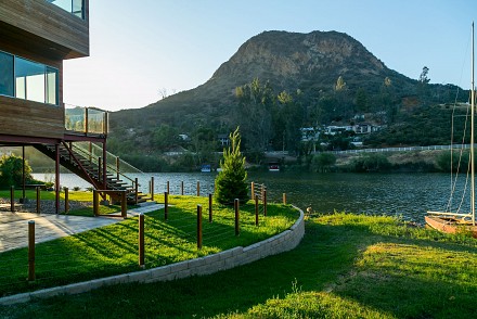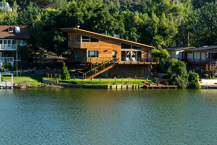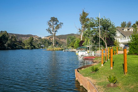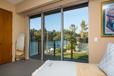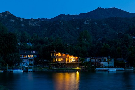 The soaring roofline of this architectural gem resembles a clipper rising above Malibou Lake. Perched right on the water's shore, the newer construction beauty is sophisticated and modern, its urban loft styling offering gracious indoor/outdoor living within it's gated property. The first level of the 2/2.5 is completely open, with massive windows streaming light throughout the living, dining, and kitchen areas. Fantastic open beam ceilings and dual-faced fireplace make for ideal entertaining. Even the laundry room has lake views! The sleek kitchen has granite & wood countertops, tile flooring, & modern wood & steel cabinetry. A romantic balcony is off the master bedroom, with its granite bath w/spa tub. The guestroom suite also includes a granite bath. With an upper level family room loft. A huge deck stretching out to the lake, with its vast mountain landscape, this is grand living at it's finest. An oversized 2 car garage & electric lift complete this smart home's design. Members enjoy year-round water fun; boating, fishing swimming and more. Situated within the Las Virgenes School District and minutes to beaches and 101—Wanna get away?