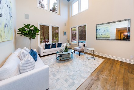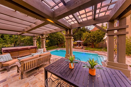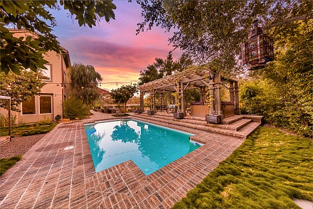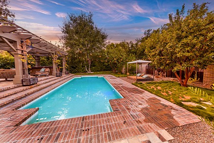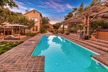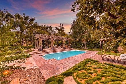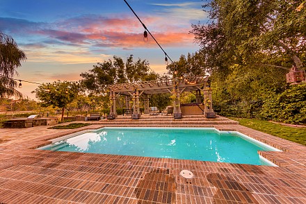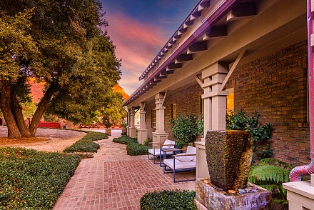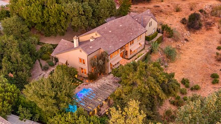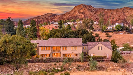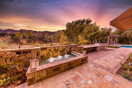 Exquisite estate nestled along the scenic Mulholland Hwy corridor. Atop a view plateau looking over Triunfo creek w/ views into the beautiful Santa Monica Mountains. Quiet, peaceful w/sunrise and sunset views. Privately gated, over 3 acres with gorgeous Oak and Sycamore canopies. Beautiful hardwood throughout lower level, grand entrance, wide hallways w/ soaring ceilings in the living room, shared fireplace between living & office. Fabulous kitchen w/Wolf Range, glass Sub Zero, center island, granite counters, breakfast area & magical views. Formal dining with masterful wine closet and adjacent butler's pantry. The master suite is ridiculous; sitting area, large bath, dual walk-ins, private patio & more smashing views. 3 large secondary en-suite bed and baths and one secondary master retreat with sitting area, kitchen/bar area and private bath. Full laundry room w/sink and 3 car garage plus overflow parking. The yard is magnificent with pool, fountains, built in BBQ and seating bar overlooking the creek, lush landscape and lighting with an abundance of property for play areas, exploration & outdoor fun. Situated within the Las Virgenes school district, minutes from multiple parks, recreation areas, beaches and conveniences. A peaceful lifestyle is beckoning.