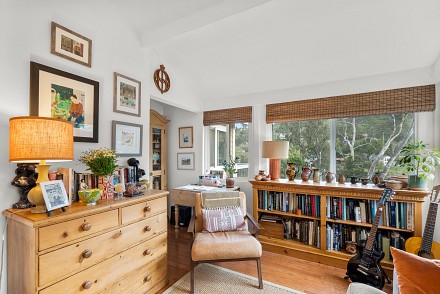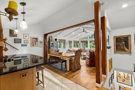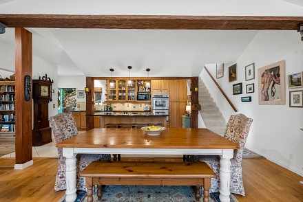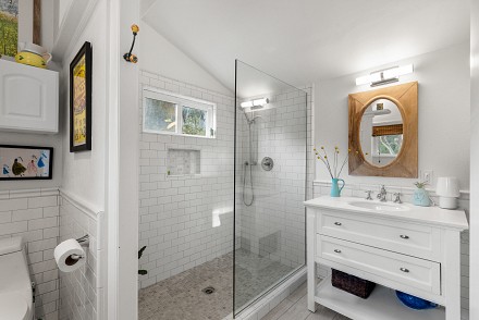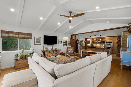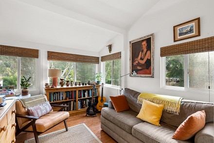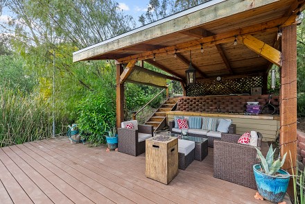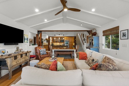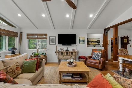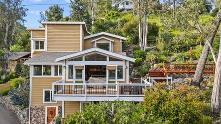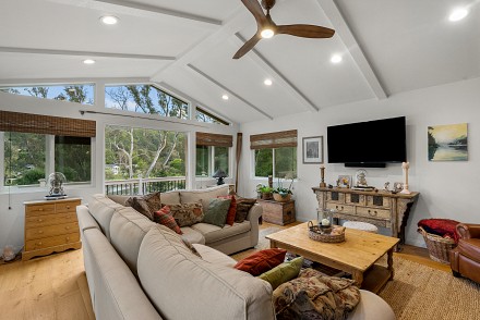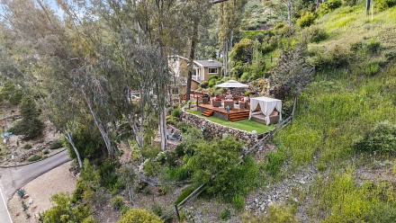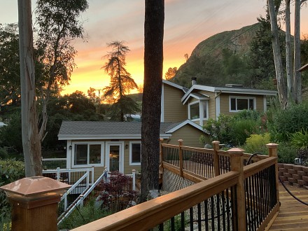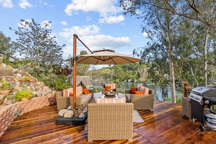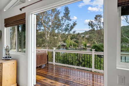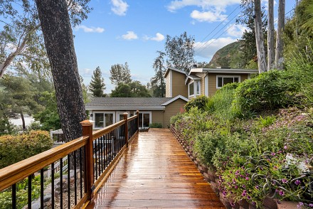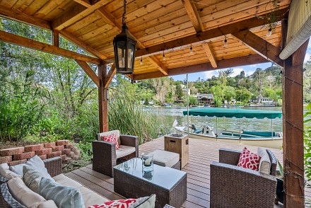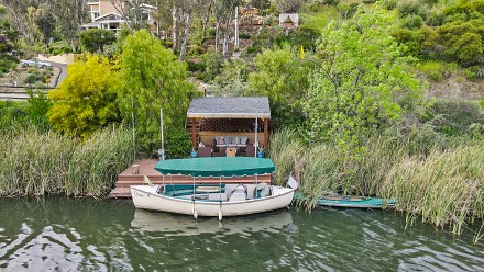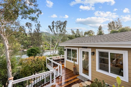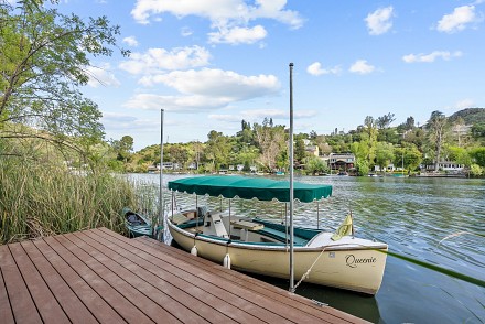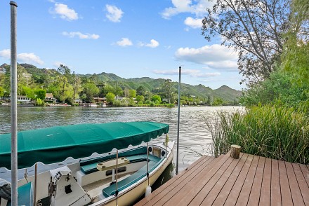 Beautifully remodeled lake home w/ panoramic & stunning views of mountains & lake. This classic 1930's home captures all the history of Malibou Lake yet is inclusive of the modern comforts of lake life. Ideally perched on a near 1/2 acre parcel & located within minutes of the 101, beaches, most conveniences & is situated within the Las Virgenes School District. Outdoor living at it's best with a sprawling refinished deck that stretches from the French Doors of the pitched living room all the way to the edges of the surveyed land. A private boat dock enhances the outdoor life with all the water activities like boating, fishing, & swimming that only members & guests enjoy. The main level includes a center island granite kitchen, bedroom, remodeled subway tile bath & living room highlighted by newer rich wood flooring, deck and expansive views. Upstairs is the cozy primary suite w/lake views, an oversized remodeled primary bath w/ separate shower & soaking tub that gazes over the lake. The lowest level consists of a 3rd bedroom or office plus a detached permitted art studio, suffice to say, where the brush of inspiration meets the canvas. A unique community with pool, pickleball, tennis and year-round events to satisfy all. Membership does have it's privileges!