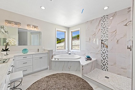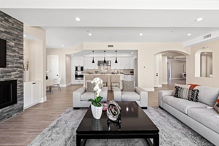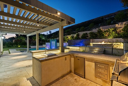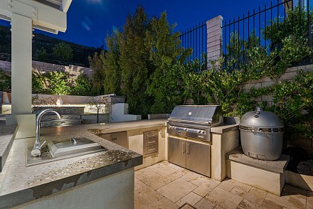 Beautiful Lonestar Estate and beautifully designed and fully landscaped with newer pool/spa/firepit/outdoor kitchen/lawns/custom lighting and backing to open space owned by HOA. Wide open plan with 5 Bedrooms, 3 en-suite, large loft, bonus office, soaring ceilings and super light and bright. Natural light pours through the dual pane windows, specifically the large bi-fold door wall that opens to the magnificent outdoor setting. Stunning kitchen with stone counters, 6 burner Wolf cooktop, glass door Sub Zero, center island breakfast bar, walk-in pantry and light cabinetry. Primary suite with private balcony, spacious bath, marble shower, soaking tub, and huge walk-in. Living room w/fireplace, family room w/fireplace, & formal dining room and a very large roomy loft. Other benefits include 3 car garage, solar, mountain and city light views with easy access to freeways, conveniences and schools!