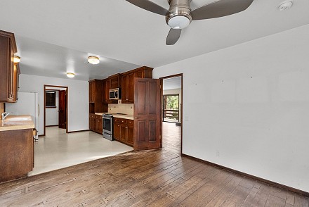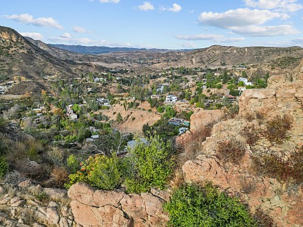 Incredible location on over 1.5 acres near the upper lake area entrance into Malibu Creek State Park. Amazing mountain views! Fantastic opportunity for updating and priced to allow someone to create their own dream and mountain oasis. Dark hardwood flooring in living room with center fireplace and sliders out to deck. 2 spacious secondary bedrooms with shared bath and large primary retreat with oversized bath area and views out to the rocky peaks above the former Mash sets. Kitchen opens to a private rear (Huge) yard that has so much natural rock and space ideal for a water scaped and garden paradise. Massive garage deceptively large because the two doors hide the real size. Outdoor enthusiasts will love the access into the park and miles and miles of trails that explore the Santa Monica National Recreation Area. The location is also ideal for it's easy proximity to the 101 fwy, schools, beaches and nearby conveniences on Kanan. NO HOA. Enjoy the peace and tranquility, the lifestyle, that so few have in Southern California