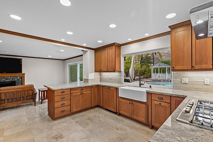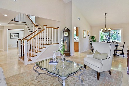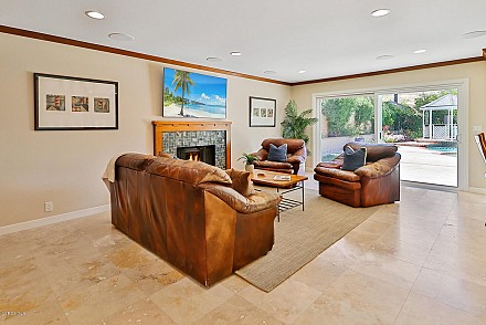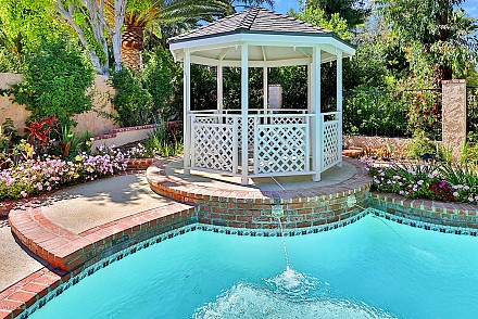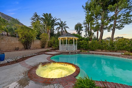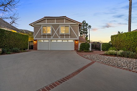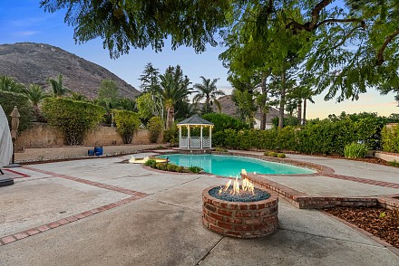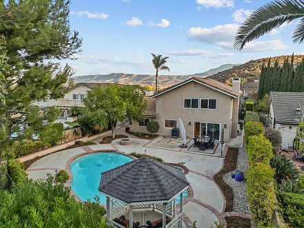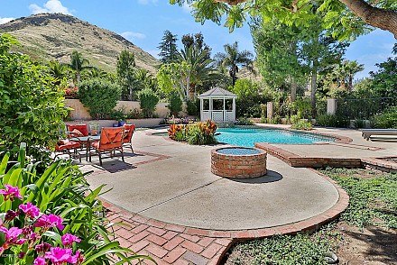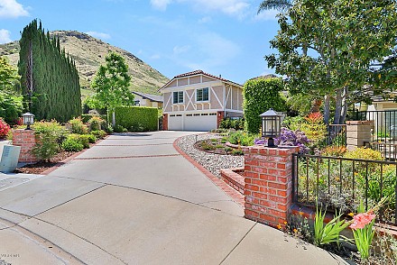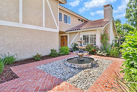 Premiere top of the Cul-de-sac location win the wonderful neighborhood of Oak Bridge Estates. green belt, park and trails with easy access out your front door. Beautifully maintained inside and out and just waiting for spring for amazing, landscaped yard to bloom. Open plan with high ceilings & 3 fireplaces, Travertine flooring throughout lower level with granite kitchen, stainless steel appliances, custom cabinetry, breakfast bar and perfect views out to the oversized pool yard. Vaulted ceiling w/fireplace in the living room and dining area. Wood flooring throughout most of upper level with a generous primary sweet, large walk-in and lovely spa/like bathroom. A real highlight of this home is the massive bonus room w/fireplace currently used as a gym and extra sitting area but could be used as a 5th bedroom featuring 2 closets. Two guest beds up with customized closets and upgraded shared bath. Mountain views from most every room. Incredible yard, fully landscaped with courtyard fountain entry, custom outdoor lighting, firepit, gazebo and loads of space for the outdoor fun this pool yard can provide. Finished 3 car garage, super clean with overhead storage racks. Ideal location minutes from the 101, schools and most conveniences.