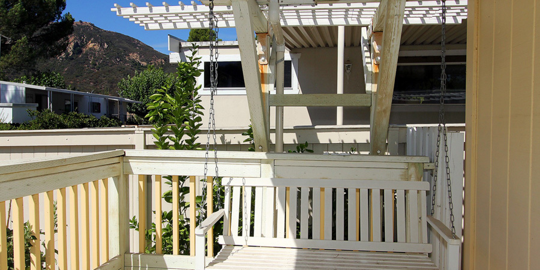 Spectacular setting, tucked in the Santa Monica mountains, with beautiful sunset views, direct access to hiking trails, and private lake for fishing and boating. This home, located in Seminole Hot Springs Park, welcomes you with plenty of natural light, beautiful wood-like flooring throughout, formal dining room and a great room opening to the kitchen. Cozy kitchen has a dining area, gas range and wood breakfast bar. Master bedroom opens to backyard patio through double French doors. Guest bathroom has designer tile accents, spa tub, shower and dual sinks. Additional ammenities include a separate laundry room, 3 car covered carport, sideyard doggy run/storage area and large enclosed back patio surrounded by mature foliage that provides privacy. HOA dues cover maintenance, sewer, water, trash, playground, basketball court, gym, clubhouse, pool, spa and private lake.