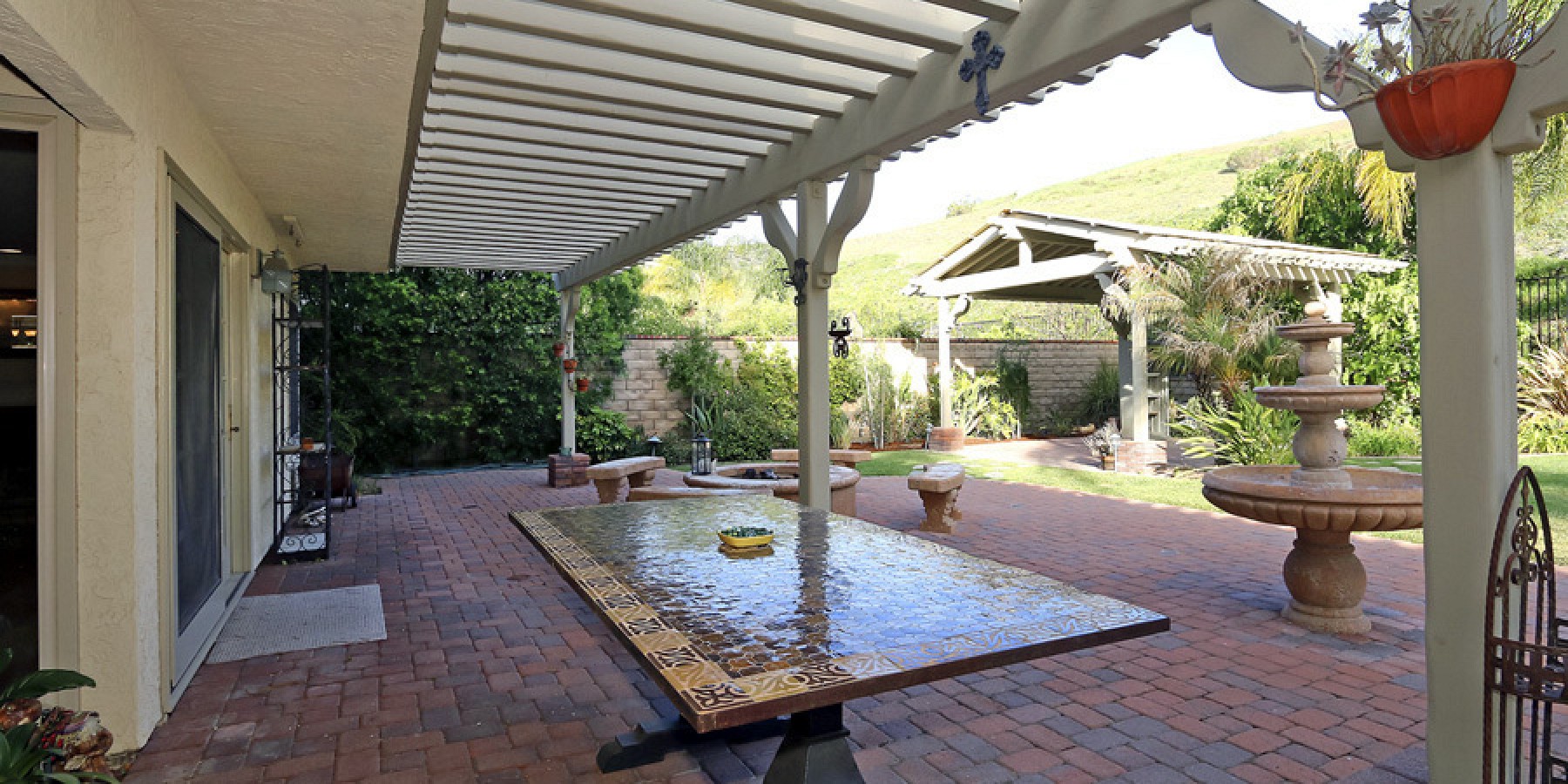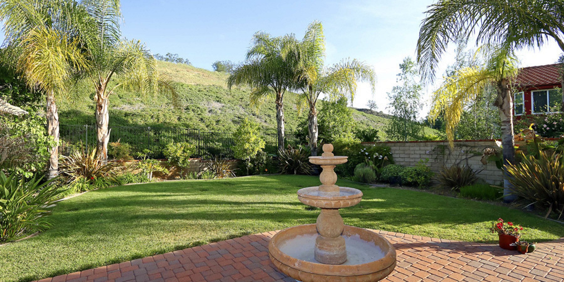 Get a taste of suburban solace in this Agoura Hills treasure! This 3/2.5 reflects all the style and charm of Southern California. Approach this home through a brick lined driveway and front courtyard to a fresh open floor plan with formal living and dining rooms accented by a cozy fireplace, bay window seating, plantation shutters and stain glassed windows. The island kitchen and family room with fireplace hug an outdoor tropical atrium and open to the gardens through beautiful French door sliders. The large master retreat also faces this patio haven. A private sanctuary is only part one of the backyard patio's charm. The beautiful landscape has a tropical touch with mature palm and fig trees that back to private open space. A quaint pergola alongside a large fire pit with cement benches is perfect for alfresco dining and entertaining. Come take a look, it's simply inviting.