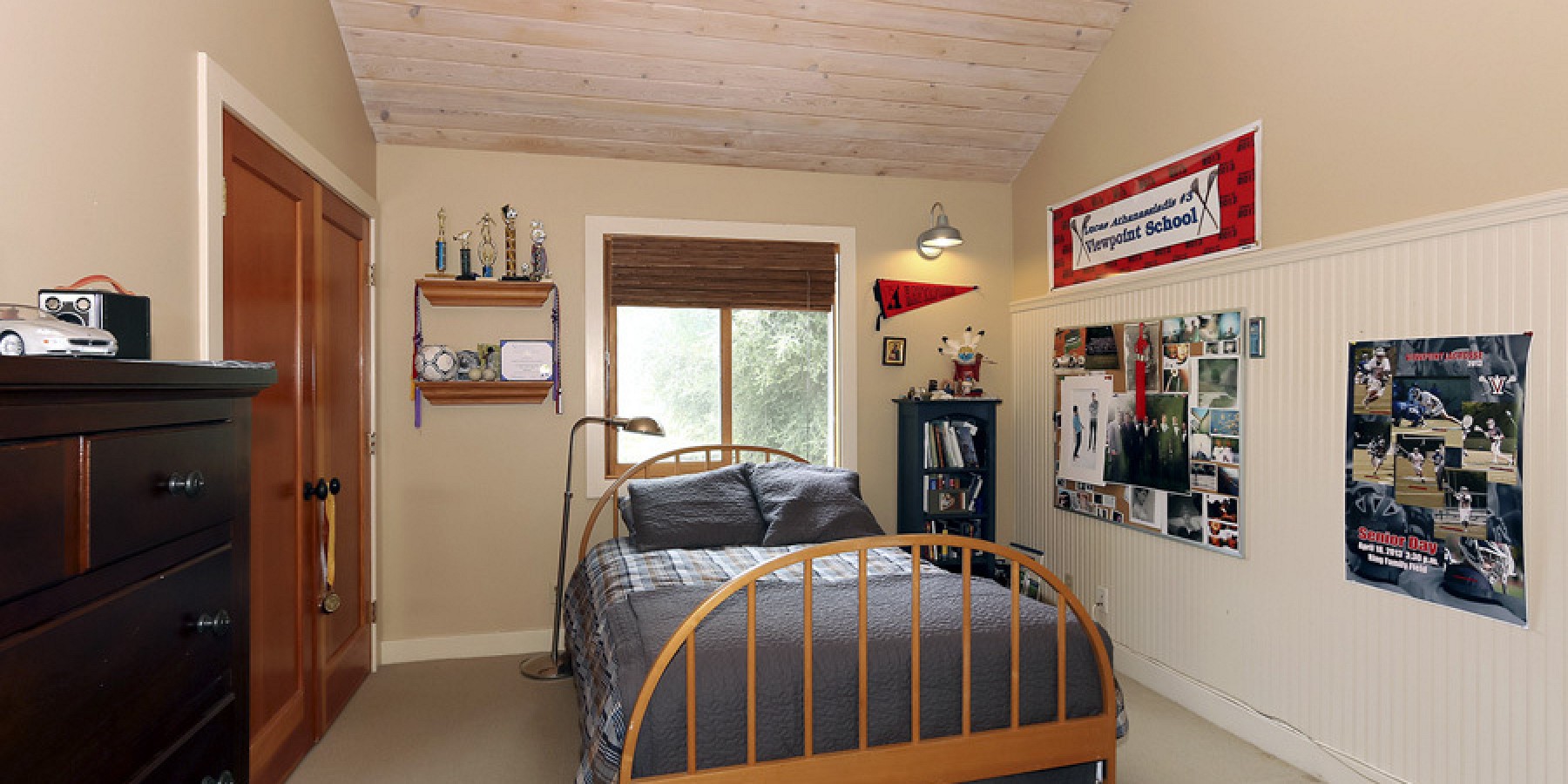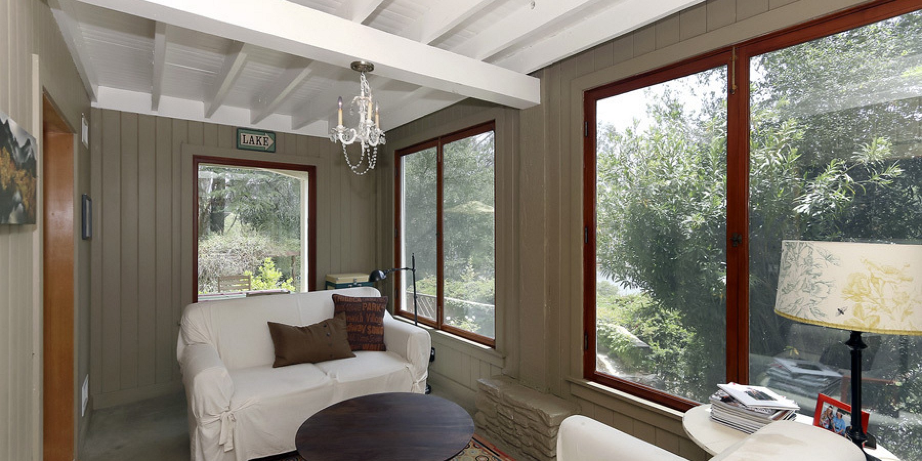 As soon as you pull up into the driveway of this 1922 Malibou Lake home, Shel Silverstein’s charming poem about living in a tree house comes to mind. The lot sits high above the lake, and dozens of trees, some pines reaching 120 feet, so envelop the property, there is hardly a room that doesn’t make you feel as if you’re a child again, “high up in the leafy branches.”