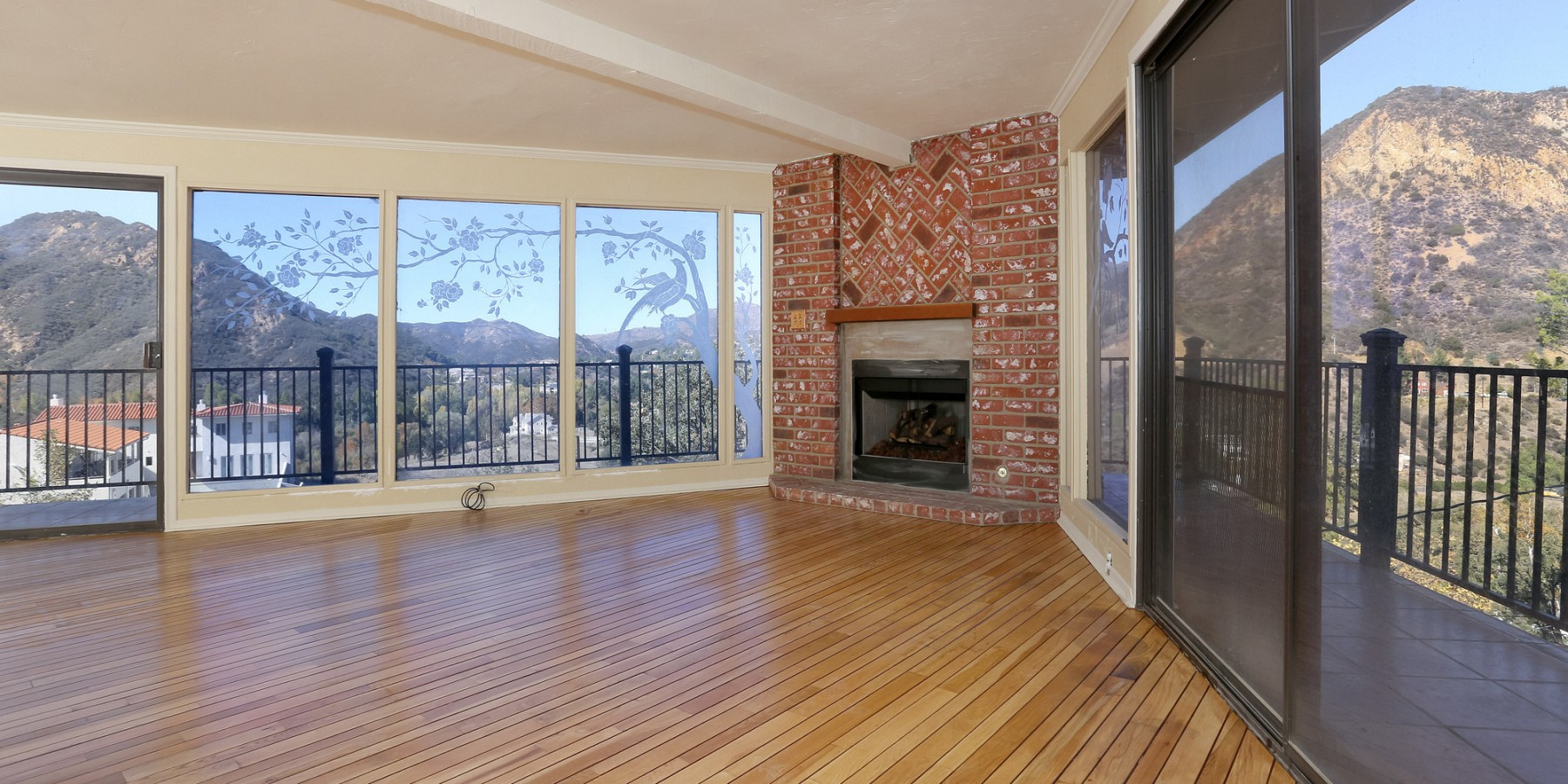 And yes,this unique home sings out style,as soon as you turn the last corner onto the Malibou Lake property. The three stories are shaped almost like the stern of a ship,with horseshoe-shaped,wraparound balconies on two of the levels. The lowest level has a myriad of possibilities,with a room on both sides of the entry. One would make a perfect wine cellar,the other a playroom,lounge area;it’s up to the creativity of the lucky owner. The second level defies the imagination. Two walls made entirely of glass look out at Sugarloaf Mountain,with the most spectacular view of any Malibou Lake estate,bar none;it will take your breath away! Dividing the windows of this living area is a floor-to-ceiling fireplace. The room is begging for a telescope,the better to view the meandering trail of the lake,the hills dotted with deer. On the other side of this floor is a triangular kitchen,a beautiful shape for a serious cook,especially with its unique Gaffers & Sautier range,double ovens,and hardwood floors. A full bath,with slate shower,and laundry room complete this level. The top floor includes two guest rooms,both overlooking the pool and mountains. The master bedroom mimics the living area,with more vast,floor-to-ceiling windows for spectacular views and a beautiful fireplace. Adjacent to the master is a large bathroom,with a jetted,soaking tub,shower,and dual sinks. The pool area is enticing for only a certain type of personality: Do you like entertaining? Do you enjoy relaxing? Do you like to have fun? If you can answer yes to all three questions,then come on over! Dive into the pool,soak in the Jacuzzi as the water cascades from the waterfall above. Invite the family for dinner at the outdoor kitchen,with grill,sink,and fridge. In the evening,roast marshmallows in one of the two fire pits,one gas,the other electric. And don’t forget to show everyone the charming A-framed guest cottage,and the pool house/storage shed. The only negative to this outdoor nirvana is that your guests may never leave! It’s time for someone to take the exceptional “bones” of this gem and make it their own,with unique,unforgettable style,and like your guests,you will also never want to leave.
