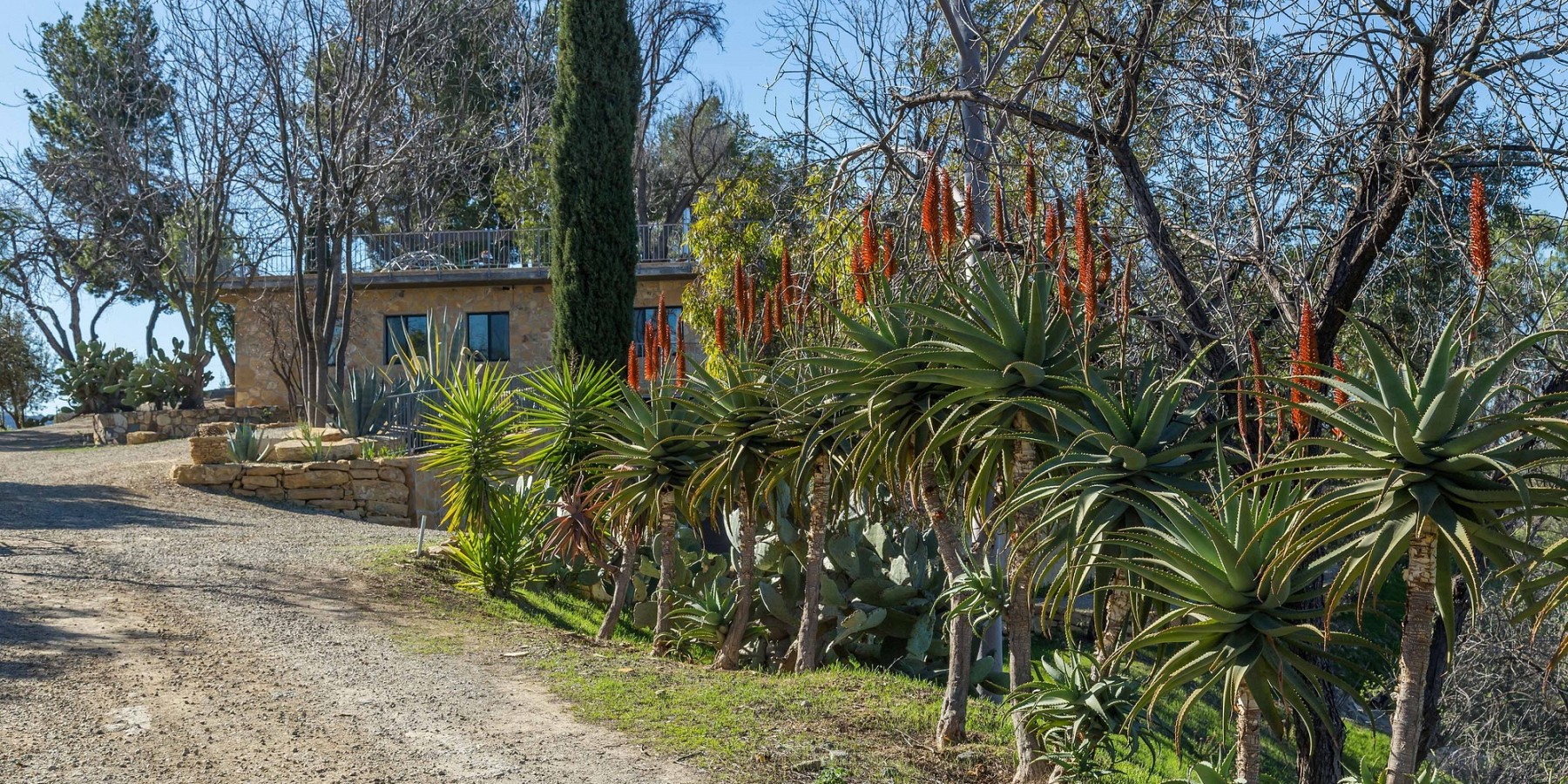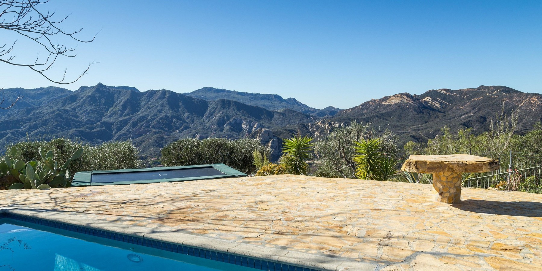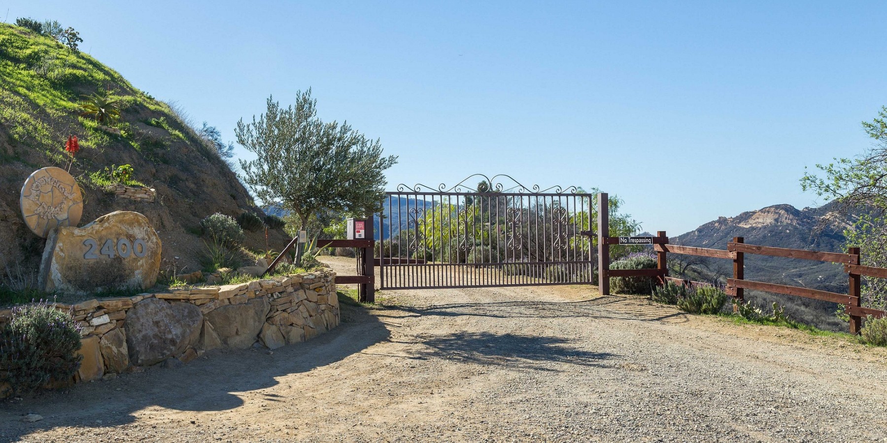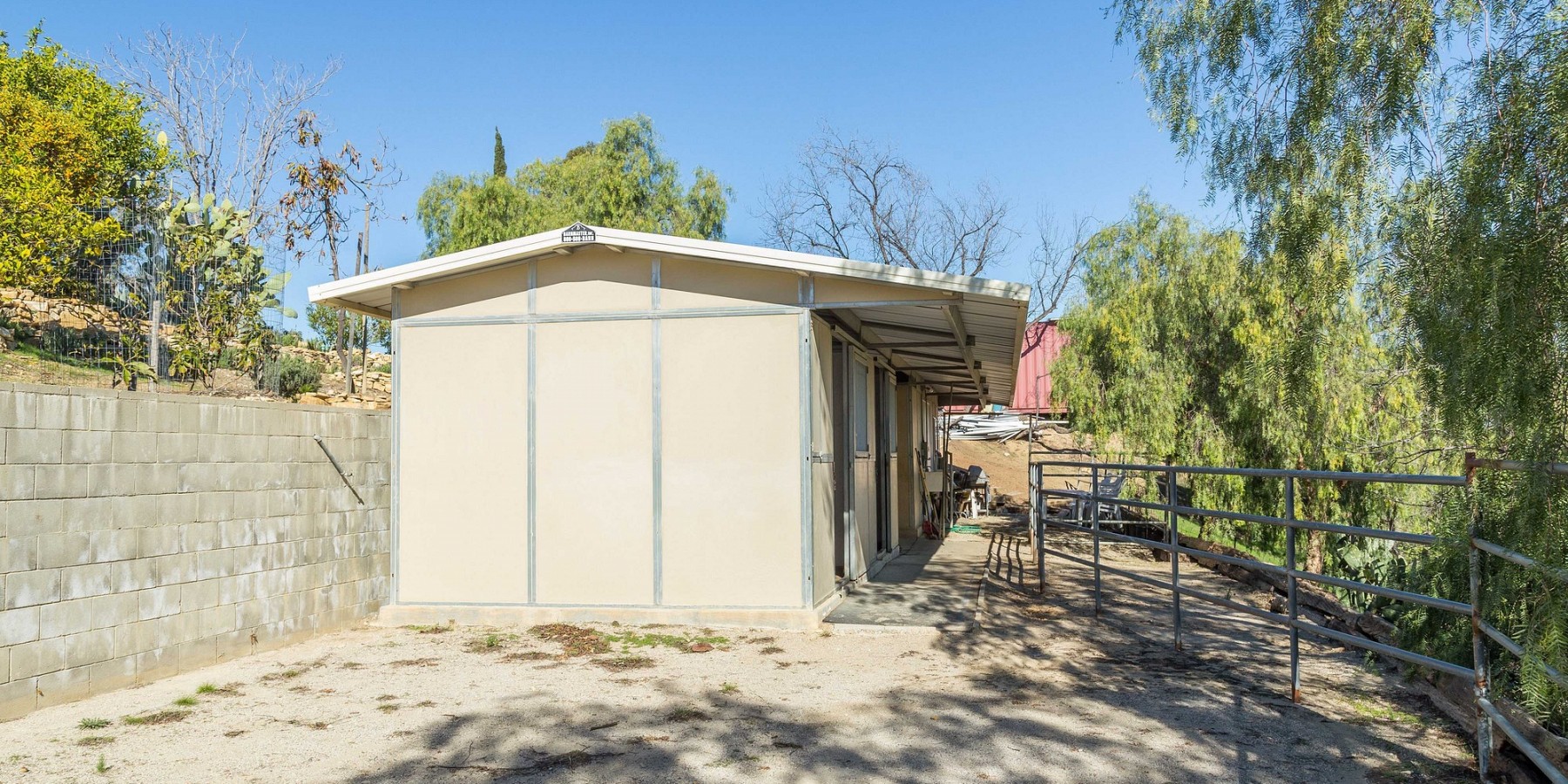 Equestrians will appreciate the sizable corral, two-stall barn, feed room, tack room and covered feeding area. Within the property are miles of private trails for horseback riding, mountain biking, hiking or strolling and daydreaming. Hundreds of miles more are accessible beyond the property fence within the Santa Monica Mountains Recreation Area. Water saving lavenders and olive trees are cultivated to provide sweet smells and cool shade.