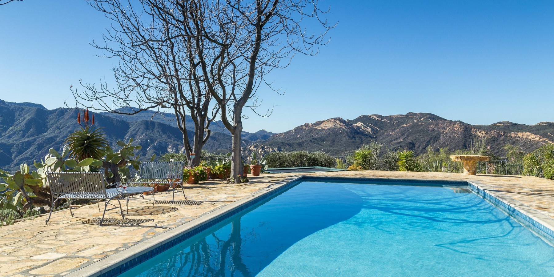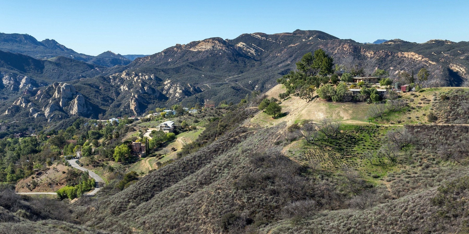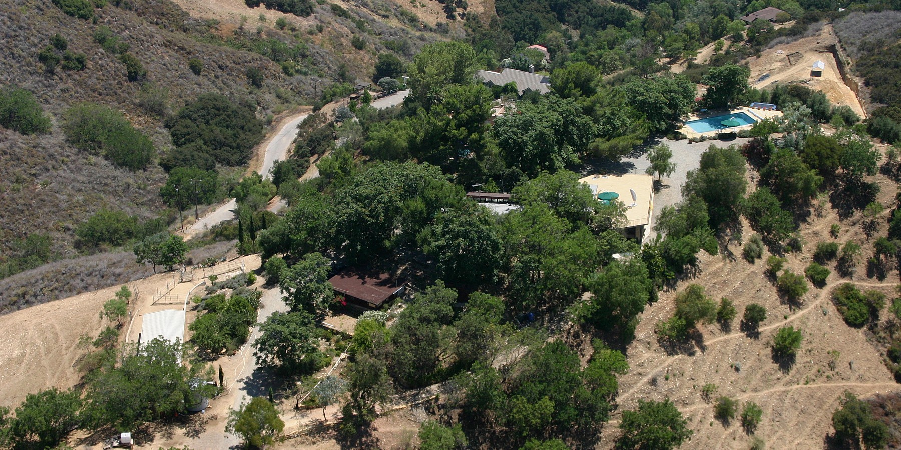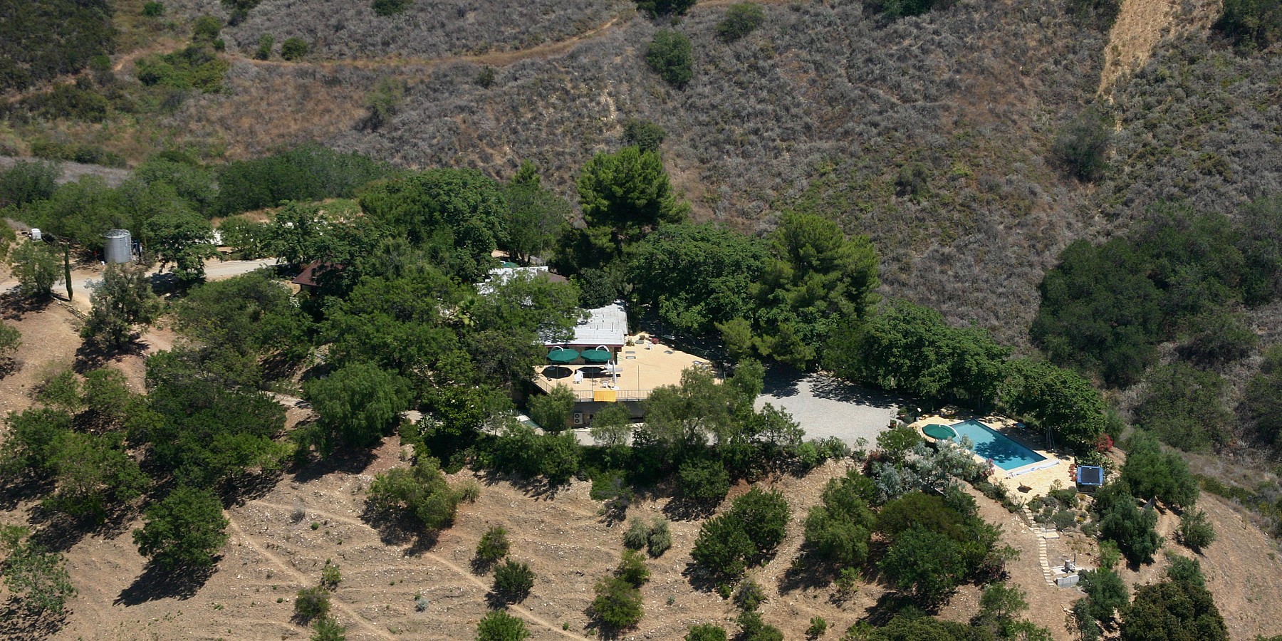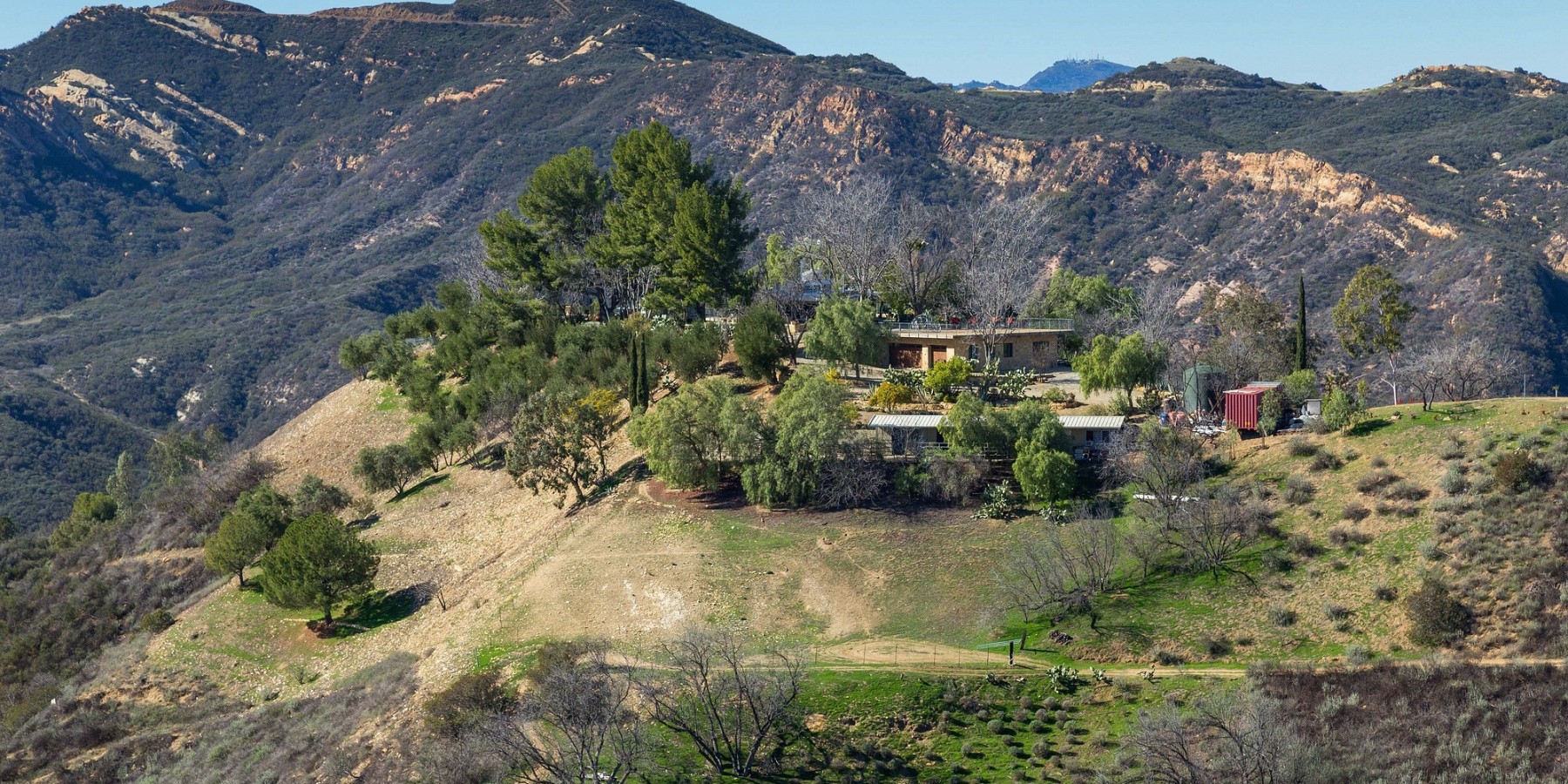 No one would expect to find such a secluded, private, and serene 58 acre estate, surrounded by protected parkland, so conveniently close to Calabasas, Malibu and Santa Monica. The adventure begins on a mile-long gated road from the summit of Old Topanga Canyon Road along a chaparral-lined ridge with views stretching from Ventura County all the way to the San Bernardino Mountains on one side and the Topanga watershed on the other. When you arrive to a second set of gates, mature aloes, lavender and wildflowers welcome you to this mountaintop retreat. Moonglow Ranch could not be more exclusive, yet it is just 10 minutes away from the very best schools, shopping, and the 101 freeway.