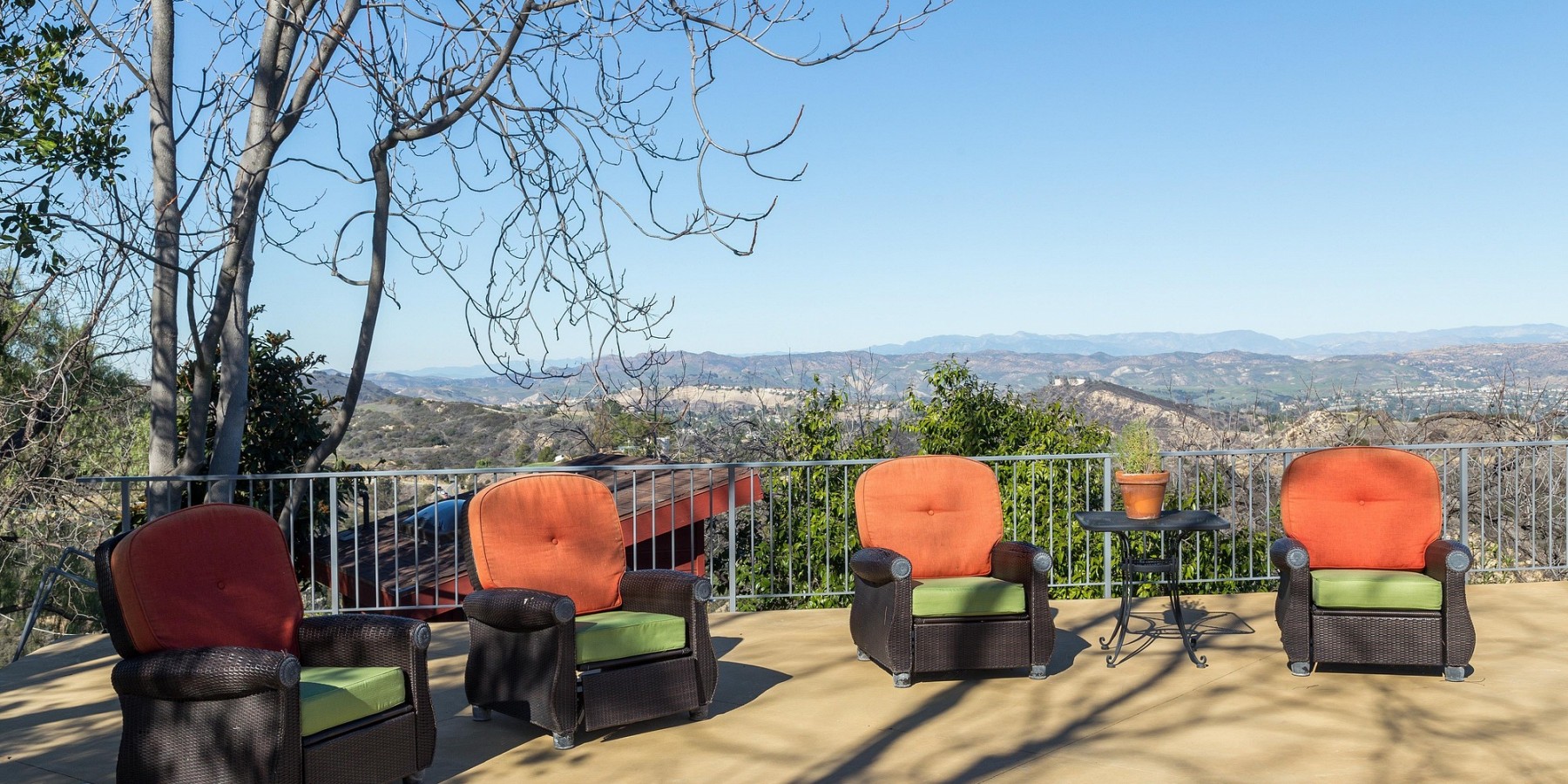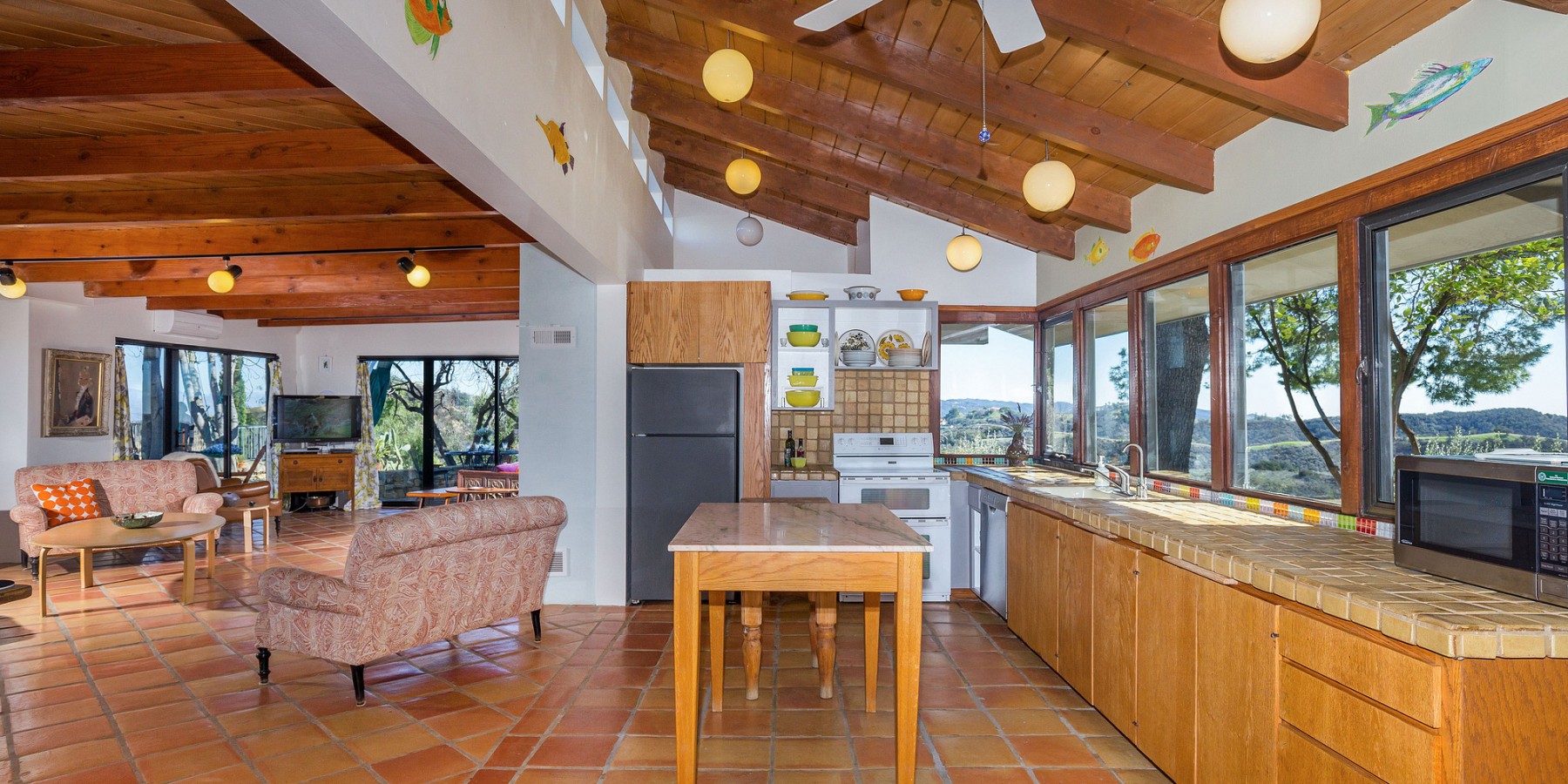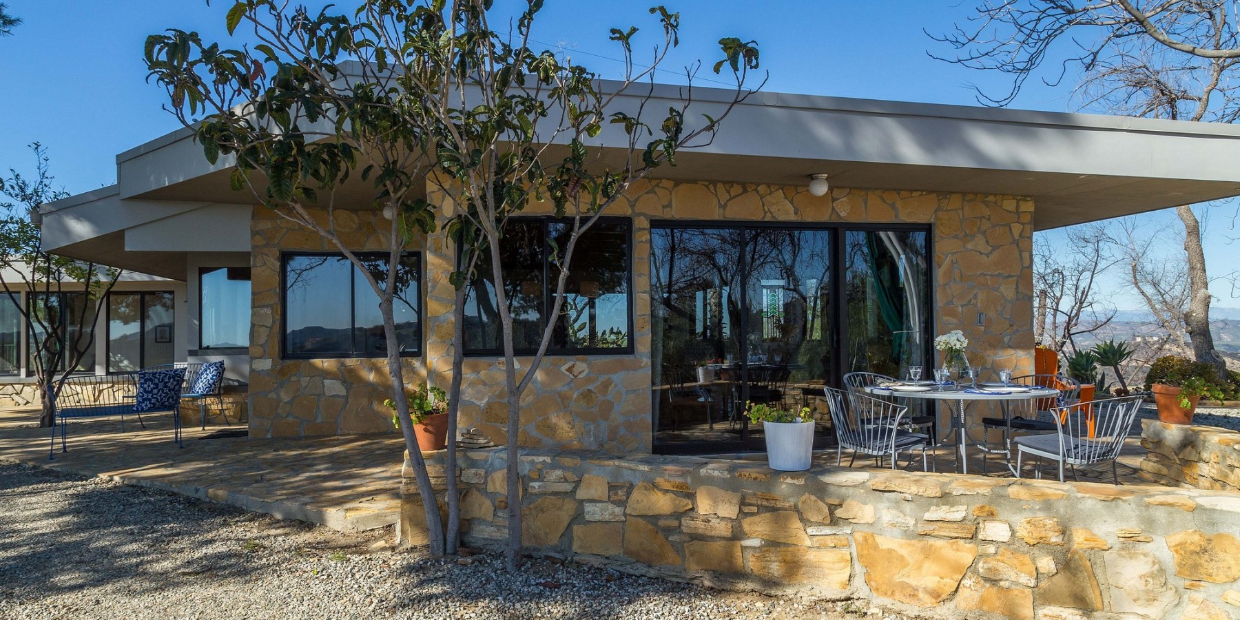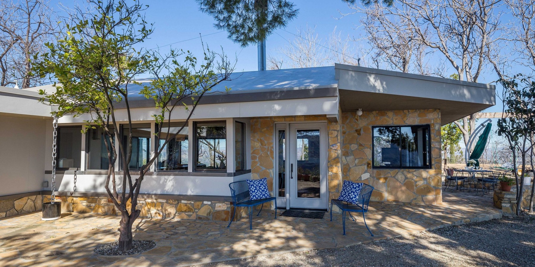 The 360 degree views from this very special property encompass the Santa Monica Mountains, the Santa Monica Bay, Palos Verdes, the Santa Susana and Simi hills, the Los Padres Ojai Mountains, the San Fernando Valley, San Gabriel Mountains and the San Bernardino Mountains with its far-away landmark Mt Baldy’s snowy peak. At night, the twinkling lights of the San Fernando Valley and of the South Bay intermingle with the night stars to create a magical scene. And, when the marine layer rolls into Topanga Canyon from the Pacific Ocean, Moonglow Ranch rises above a sea of white clouds, bathed in the reflected light of the moon.