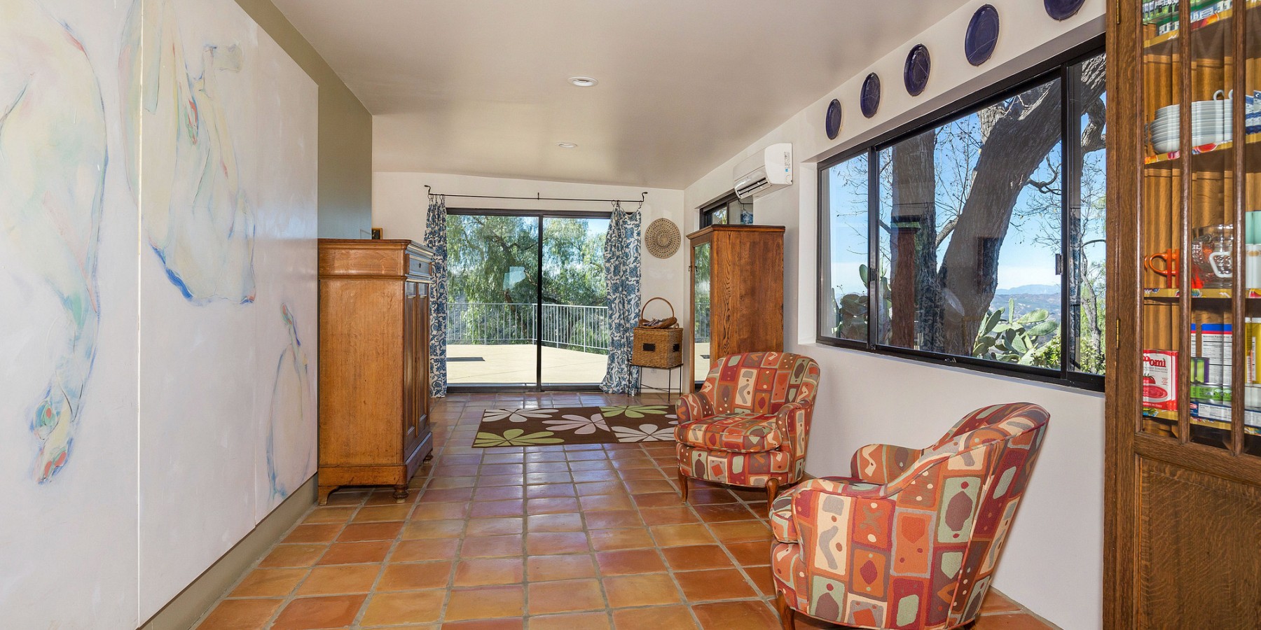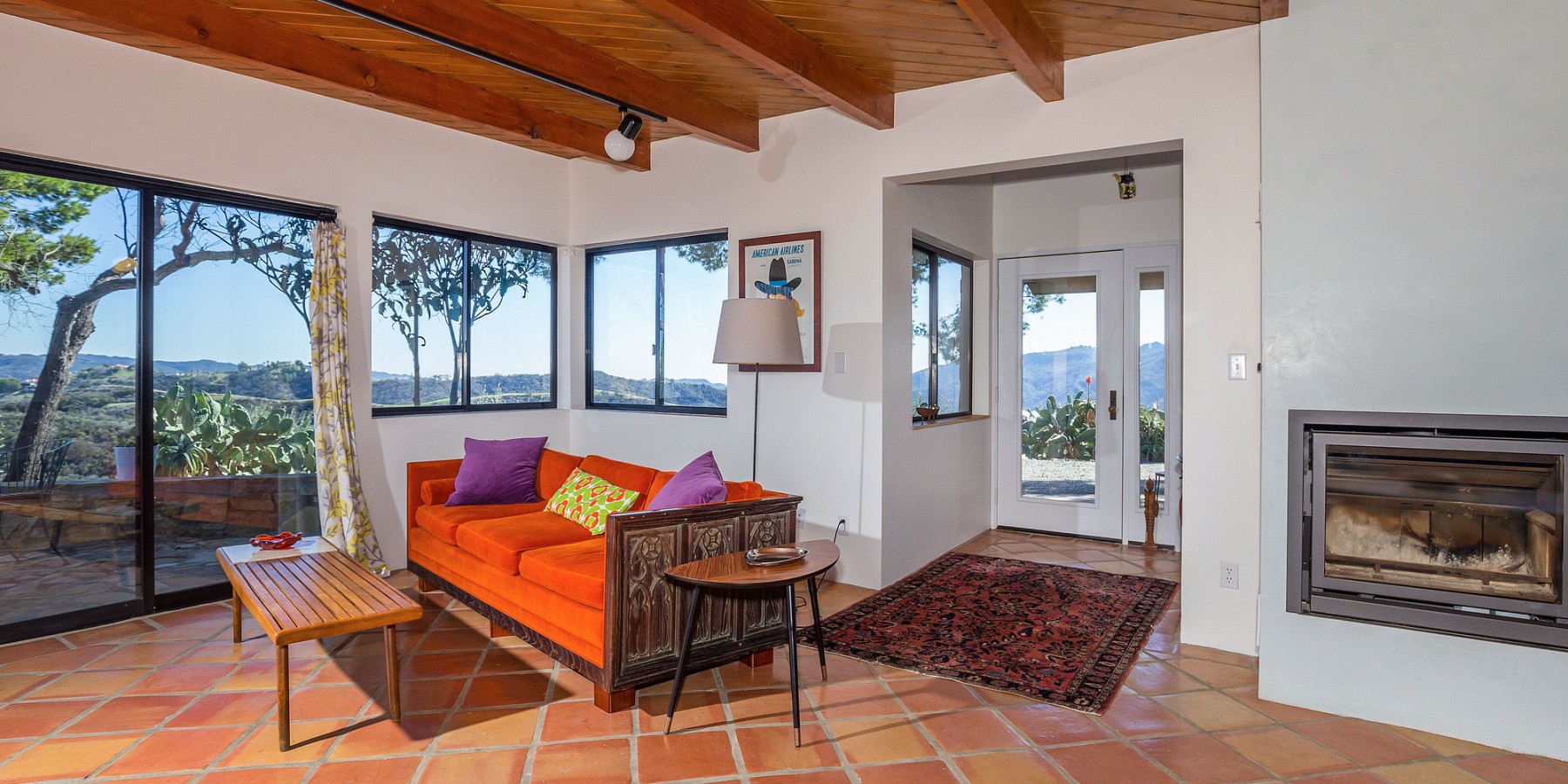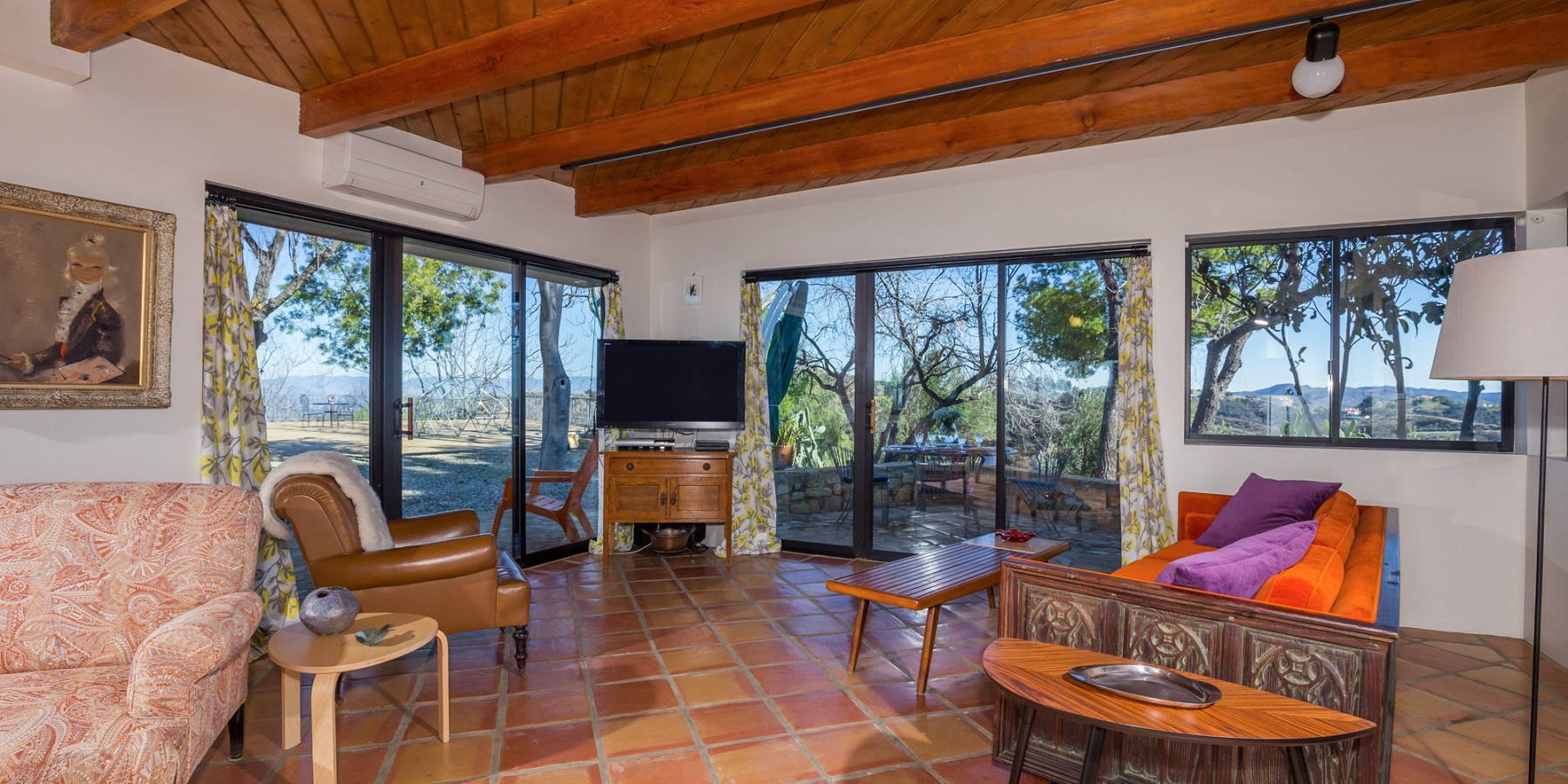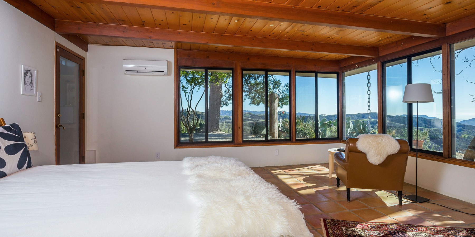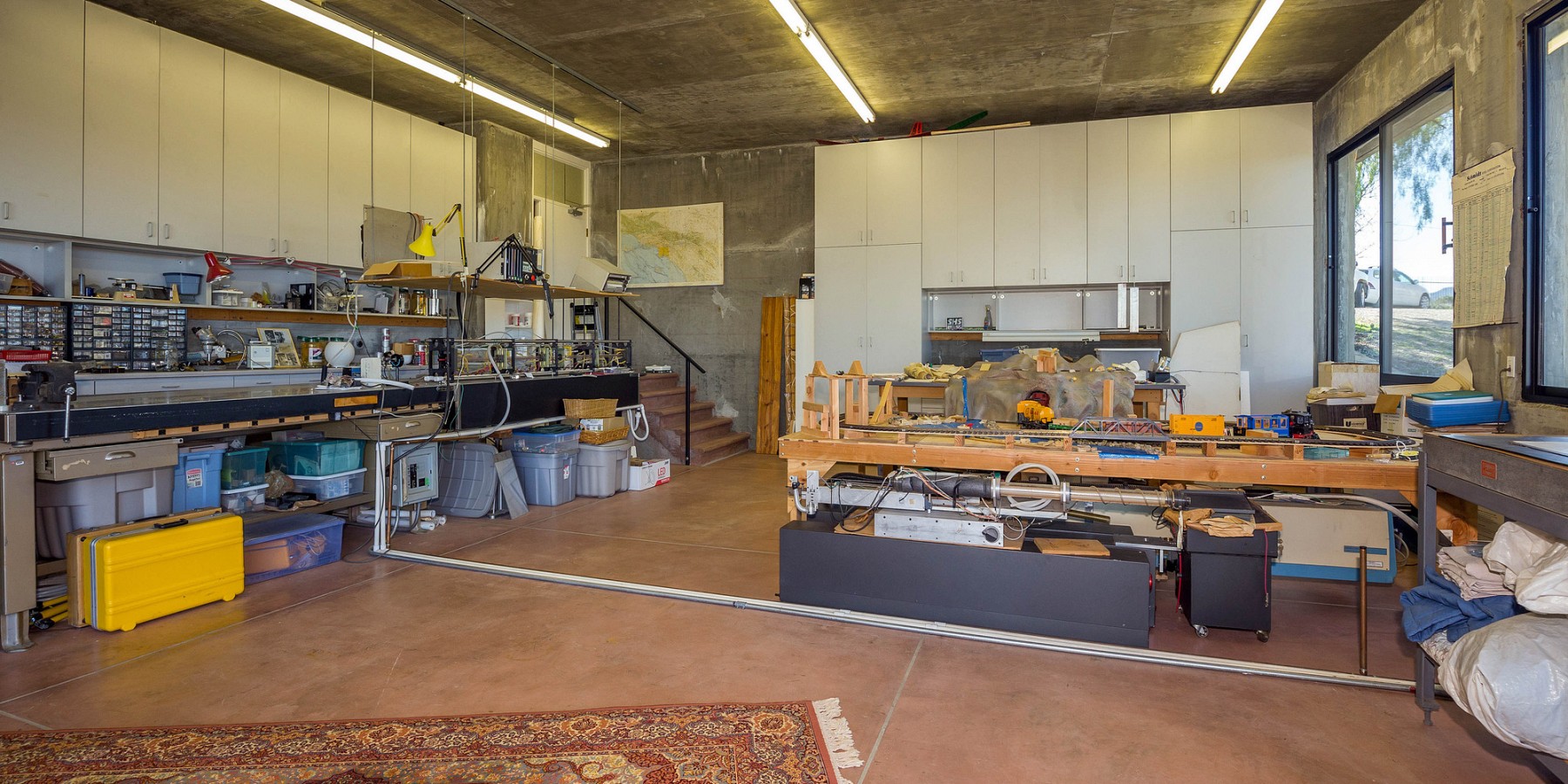The lower level holds a large, central sitting room, two spacious bedrooms, and a full bath, all with views of the mountains and valley, of course! A few steps further down is a massive sun-drenched workshop, a car collector’s or artist’s dream with floor-to-ceiling sliding glass bay doors overlooking the Canyon and the San Fernando Valley beyond.