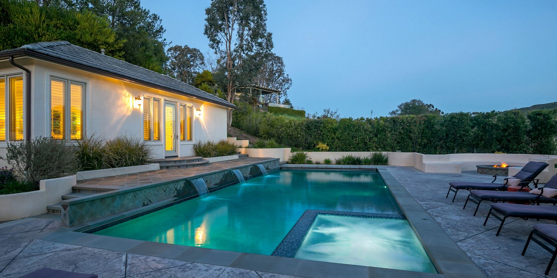 But it is soon obvious we are not in an 18th century estate – this home is all 21st century, with everything designed for a life of ease and enjoyment. A large bedroom and full bath on the first level is perfect for guests, with four more bedrooms and baths on the second. The master suite is pure delight: cozy seating area with fireplace, soaking tub overlooking the pool below, and custom built walk-in closet.