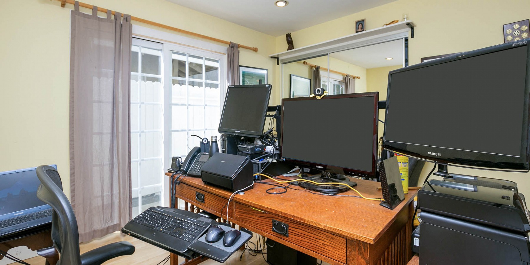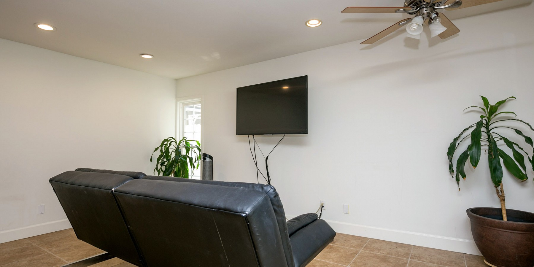 This is a home that just loves to “check-off” buyers’ wish-list boxes. For example: the client has three cars in pristine condition – check – a three-car garage. The client is an avid golfer – check – a putting green in the back yard. The client has two young, active children – check – a beautiful park, with gym equipment, just around the corner, as well as an award-winning school. The clients have no children, but love sunset strolls – check – green belts meander throughout the community, perfect for hikers, walkers, and bikers. The clients love to entertain, but hate time spent maintaining a pool – check – a community pool and sports courts a few blocks away. Best of all is the neighborhood: coveted First Neighborhood in Westlake Village! And that is just on the outside!! Walking into the foyer, with its vaulted ceiling and enormous dual-paned windows letting in the California sunshine, and you’ll see that updates have been accomplished with judicious taste. The interior is modern: white oak hardwood floors, a beautiful white, floor-to-ceiling fireplace in the living room, an elegant, open-oak staircase leading to the second level. A more traditional client, however, will be pleased to see a separate, spacious dining room, private, yet accessible to the kitchen. Maple cabinetry, stainless appliances, and granite counters makes this area a joy to work in, and overlooks a family room with sliders leading to the patio. A bedroom, with its remodeled bathroom, is also on the first level. Upstairs, two bedrooms share another updated, full bath. The master, with ensuite bath, has two closets, one as a walk-in.