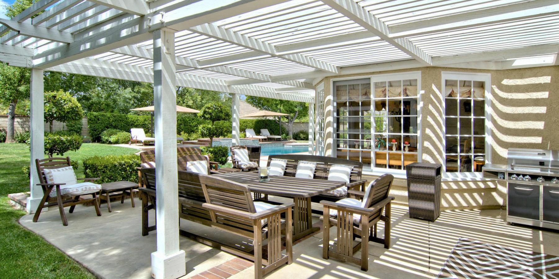 Outside, a pergola runs the length of the back of the home, and beyond, providing ample room for dining and lounging. Two grassy areas lie on both sides of the spacious pool, fountain, and spa – badminton, anyone? A luxurious home, with abundant upgrades: 3-car garage with epoxy floor, furnace, air conditioning, solar, etc., etc., etc. What is lacking? A family who will grace its rooms with passion and love. Agree? Oui!!