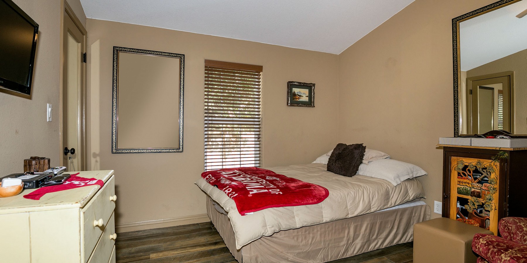 The Blue Dude neighborhood is home to some of the most interesting people in Southern California. Just taking a walk through the streets shows “owners’ pride:” beautifully maintained yards & landscaping. This home is no exception: drought-tolerant plants, pine and oak trees, fencing, and 2-car parking. A porch with Trex decking opens to the living room. The teak floors perfectly complement the granite fireplace. The space is light-filled, with 9 windows facing the open living & kitchen areas. All upgrades have been designed to create a cabin atmosphere, along with 21st century amenities, especially evident in the kitchen: granite counters, deep country sink, and breakfast bar.2 guest bedrooms share a bathroom. The master bedroom, with 2 windows, & walk-in closet, has an ensuite bath. The soaking tub, surrounded with granite, along with double-sinks and separate shower, will satisfy any meticulous owners. Solar tubes provide additional light in the home. This secluded location is close to nearby parks, with hiking trails, as well as being convenient to beaches and the 101 freeway. Also nearby is Muse School & Las Virgenes Schools. The spirit of Blue Dude Community is vibrant and welcoming