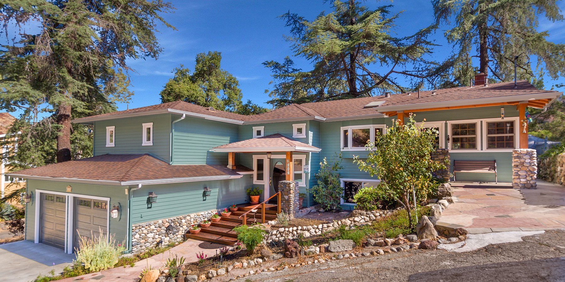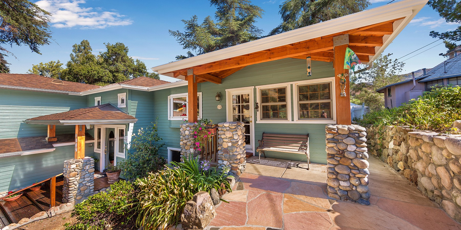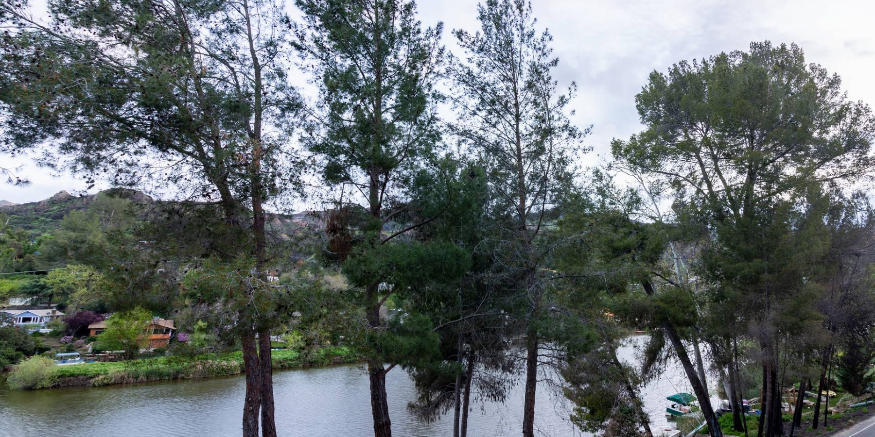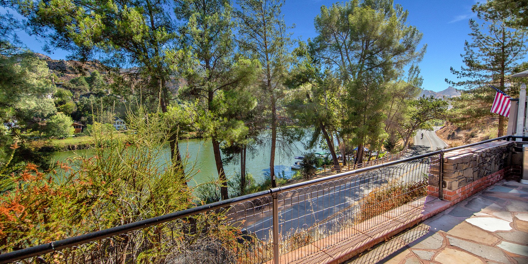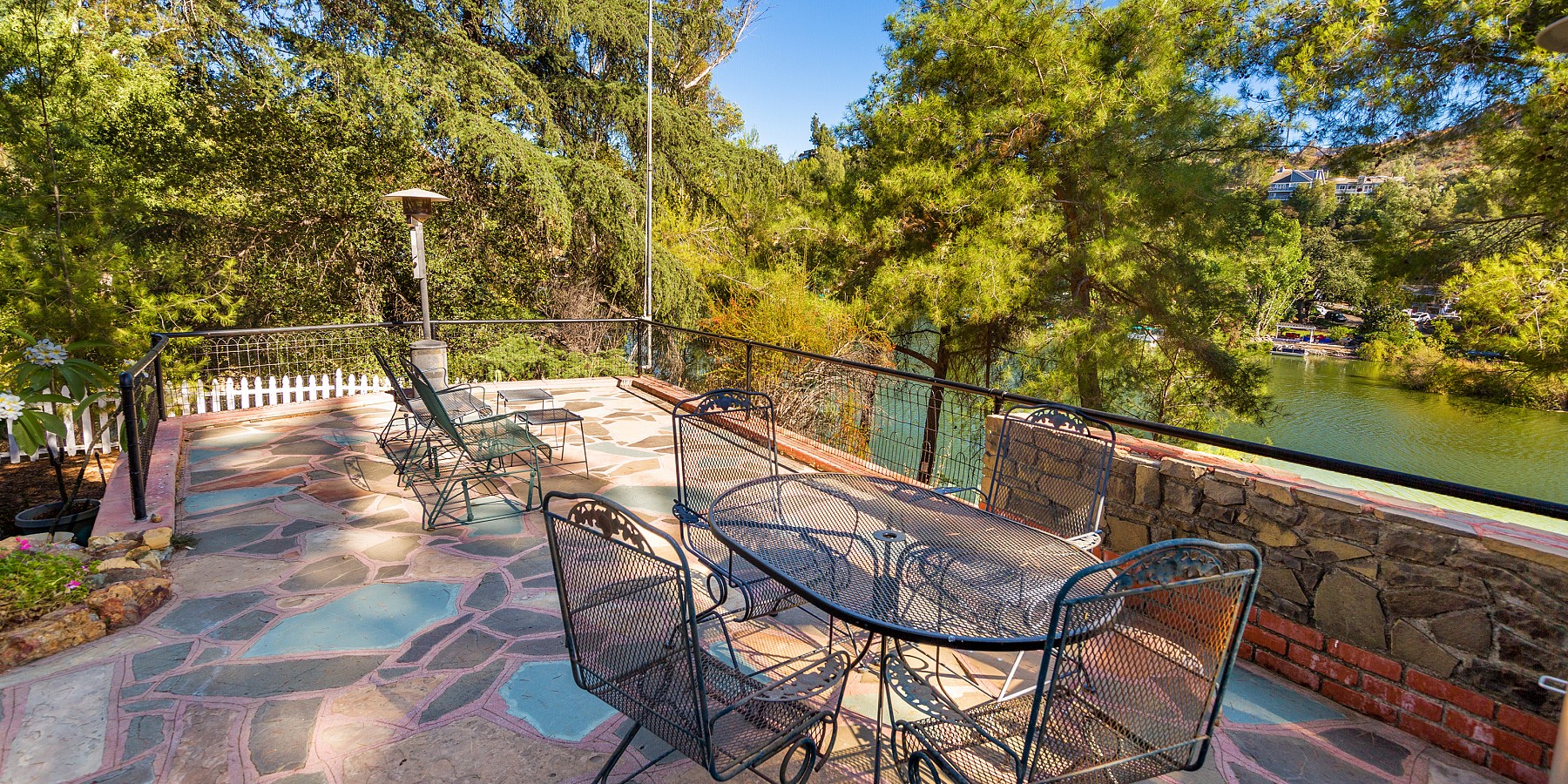 Lake living at its absolute finest, blending the ageless beauty of the “bygone days” with meticulously crafted updates where they count: kitchen and bathrooms. To try to replicate the gorgeous knotty pine ceilings and walls today would be almost impossible. Entering the living area, a dramatic stone fireplace matches the stonework found at the entrance.Large pane windows, vaulted ceilings, and hardwood flooring is found throughout the home. The kitchen, bathed in sunlight, features open-beamed ceiling, stainless appliances, custom cabinetry, and a large center island. The master bedroom, also on this level, is highlighted by massive windows overlooking the lake and mature trees. With a clawfoot tub, white marble counters, large walk-in closet, and spacious deck, nothing is overlooked! On the lower level are two guest rooms, one housing a beautifully remodeled ensuite bath. A sitting room, bathroom, and small open office completes this level. The nearly ½ acre with new landscaping and native California plants has a stone slab deck overlooking the lake and is ideal for entertaining. Facilities for lake members include: tennis, fishing, boating, and pool. Although residents are only minutes to the freeway and beaches, living in this 1920’s Craftsman cabin reminds one of what California used to be like – authentic and exciting!