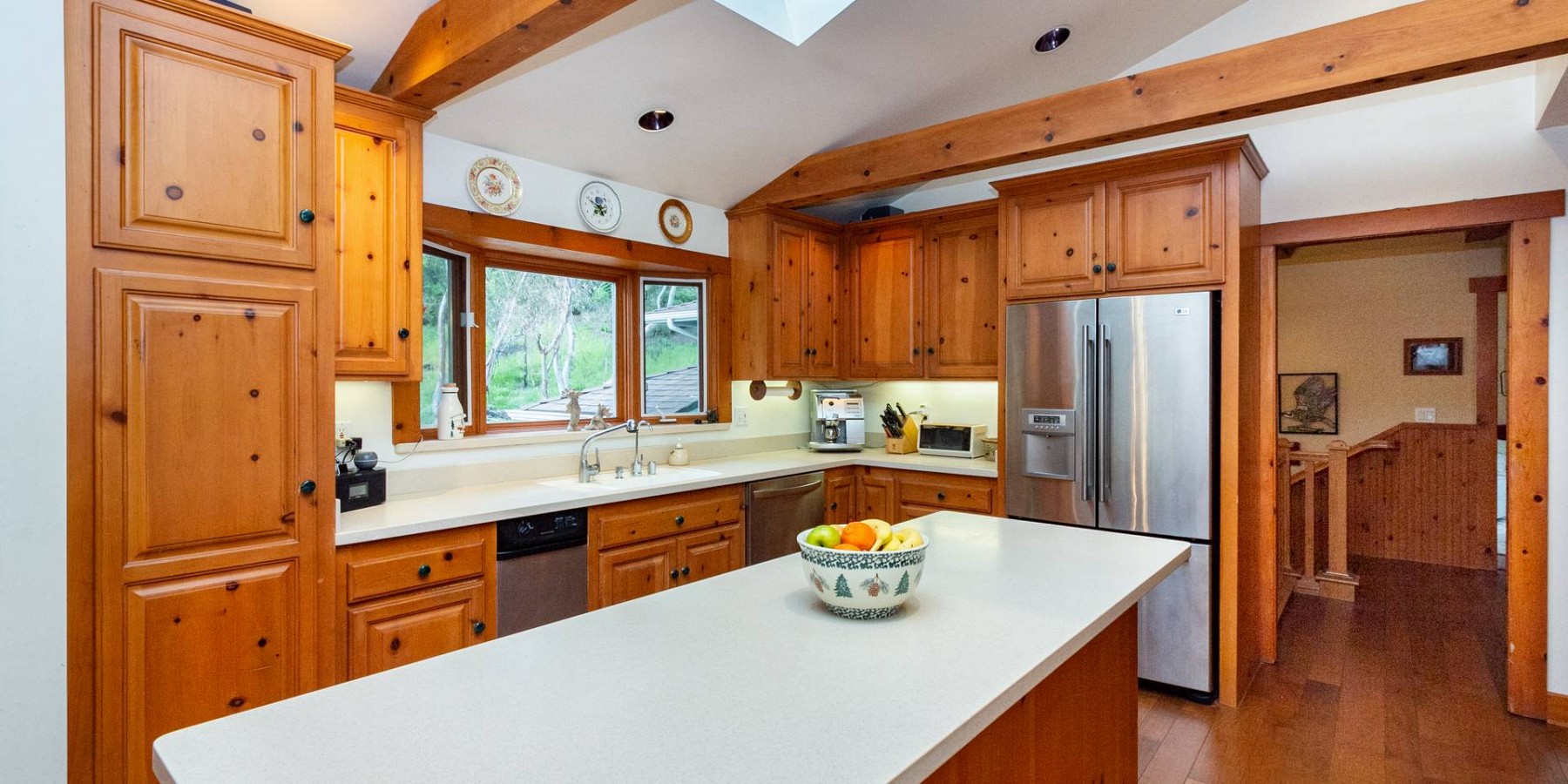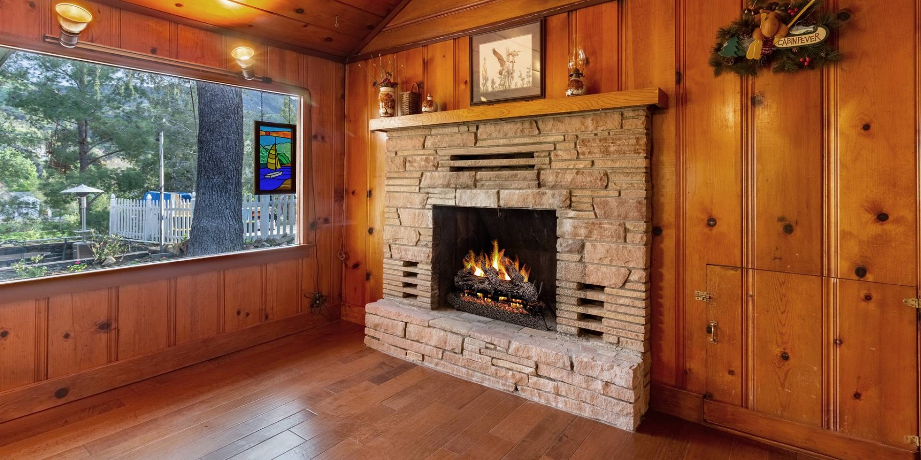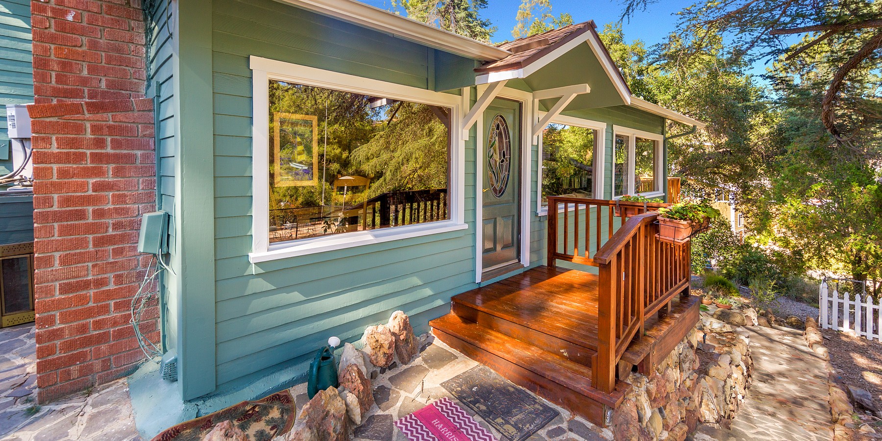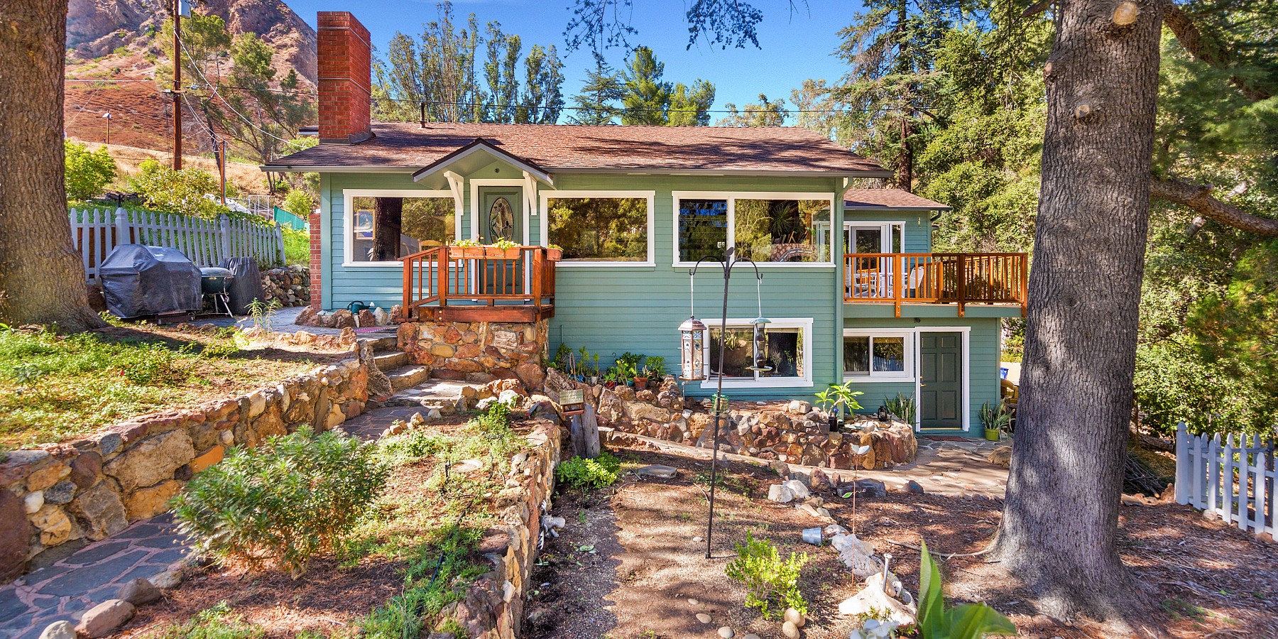 Lake living at its absolute finest, blending the ageless beauty of the “bygone days” with meticulously crafted updates where they count: kitchen and bathrooms. To try to replicate the gorgeous knotty pine ceilings and walls today would be almost impossible. Entering the living area, a dramatic stone fireplace matches the stonework found at the entrance.Large pane windows, vaulted ceilings, and hardwood flooring is found throughout the home. The kitchen, bathed in sunlight, features open-beamed ceiling, stainless appliances, custom cabinetry, and a large center island. The master bedroom, also on this level, is highlighted by massive windows overlooking the lake and mature trees. With a clawfoot tub, white marble counters, large walk-in closet, and spacious deck, nothing is overlooked! On the lower level are two guest rooms, one housing a beautifully remodeled ensuite bath. A sitting room, bathroom, and small open office completes this level. The nearly ½ acre with new landscaping and native California plants has a stone slab deck overlooking the lake and is ideal for entertaining. Facilities for lake members include: tennis, fishing, boating, and pool. Although residents are only minutes to the freeway and beaches, living in this 1920’s Craftsman cabin reminds one of what California used to be like – authentic and exciting!