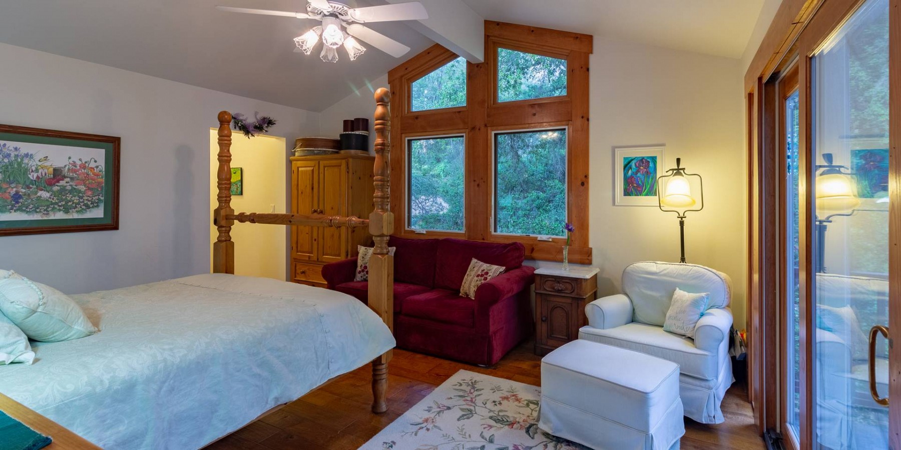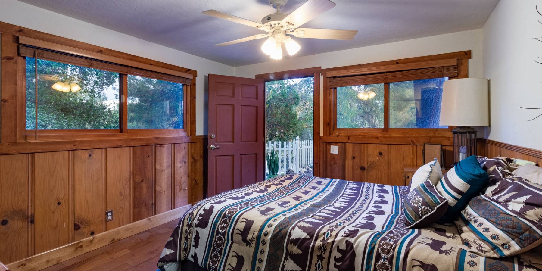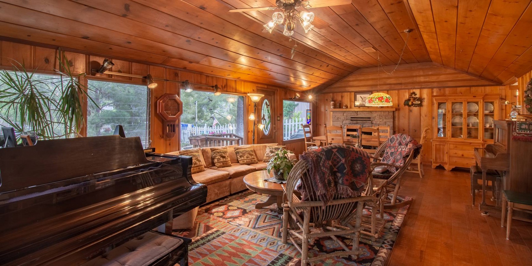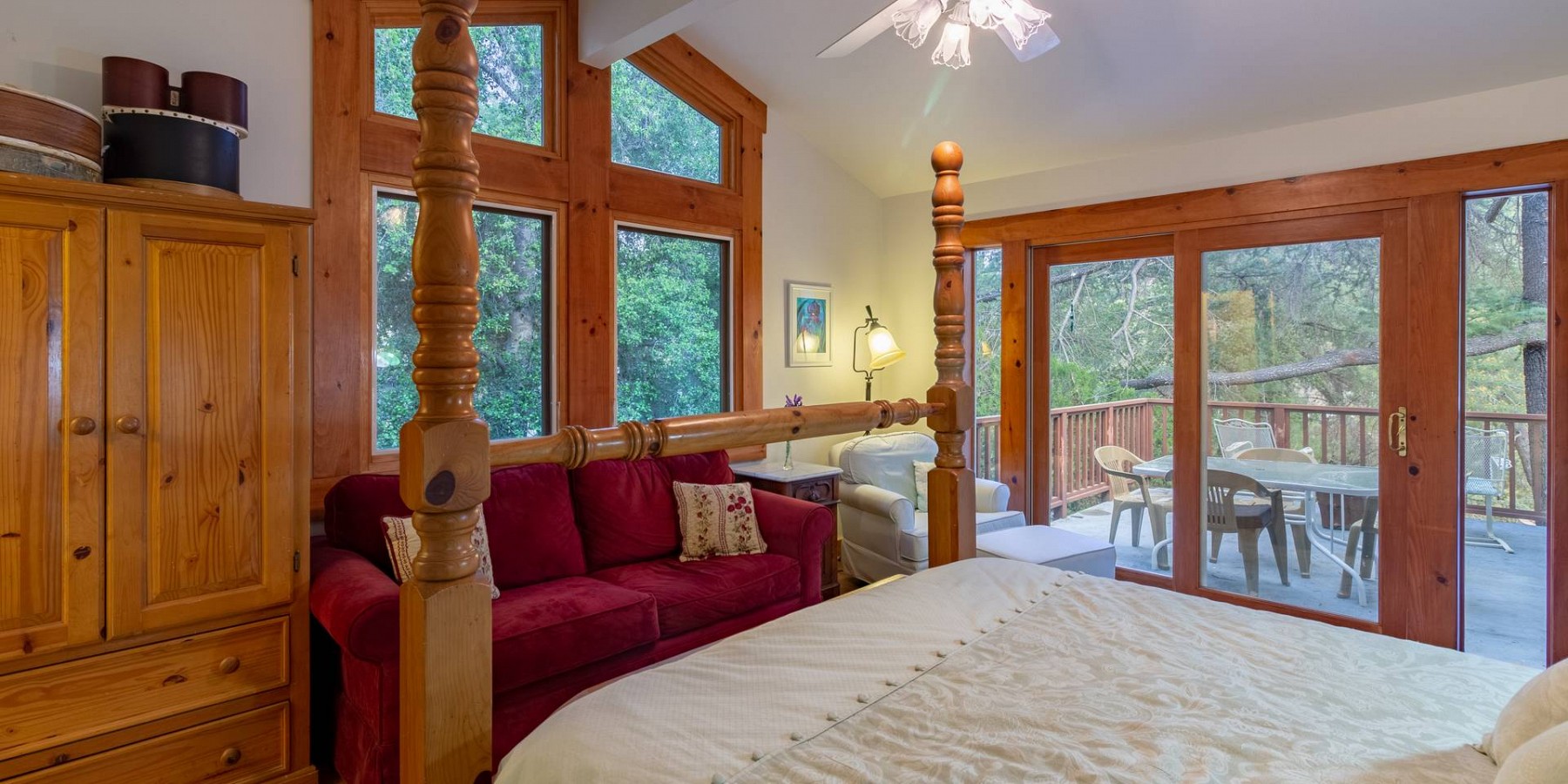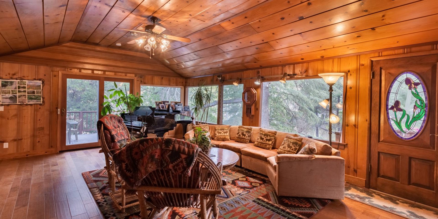 Lake living at its absolute finest, blending the ageless beauty of the “bygone days” with meticulously crafted updates where they count: kitchen and bathrooms. To try to replicate the gorgeous knotty pine ceilings and walls today would be almost impossible. Entering the living area, a dramatic stone fireplace matches the stonework found at the entrance.Large pane windows, vaulted ceilings, and hardwood flooring is found throughout the home. The kitchen, bathed in sunlight, features open-beamed ceiling, stainless appliances, custom cabinetry, and a large center island. The master bedroom, also on this level, is highlighted by massive windows overlooking the lake and mature trees. With a clawfoot tub, white marble counters, large walk-in closet, and spacious deck, nothing is overlooked! On the lower level are two guest rooms, one housing a beautifully remodeled ensuite bath. A sitting room, bathroom, and small open office completes this level. The nearly ½ acre with new landscaping and native California plants has a stone slab deck overlooking the lake and is ideal for entertaining. Facilities for lake members include: tennis, fishing, boating, and pool. Although residents are only minutes to the freeway and beaches, living in this 1920’s Craftsman cabin reminds one of what California used to be like – authentic and exciting!