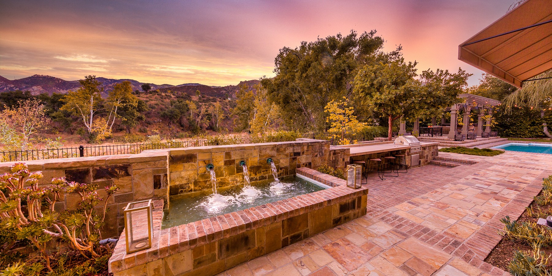 Exquisite estate nestled along the scenic Mulholland Hwy corridor. Atop a view plateau looking over Triunfo creek w/ views into the beautiful Santa Monica Mountains. Quiet, peaceful w/sunrise and sunset views. Privately gated, over 3 acres with gorgeous Oak and Sycamore canopies. Beautiful hardwood throughout lower level, grand entrance, wide hallways w/ soaring ceilings in the living room, shared fireplace between living & office. Fabulous kitchen w/Wolf Range, glass Sub Zero, center island, granite counters, breakfast area & magical views. Formal dining with masterful wine closet and adjacent butler's pantry. The master suite is ridiculous; sitting area, large bath, dual walk-ins, private patio & more smashing views. 3 large secondary en-suite bed and baths and one secondary master retreat with sitting area, kitchen/bar area and private bath. Full laundry room w/sink and 3 car garage plus overflow parking. The yard is magnificent with pool, fountains, built in BBQ and seating bar overlooking the creek, lush landscape and lighting with an abundance of property for play areas, exploration & outdoor fun. Situated within the Las Virgenes school district, minutes from multiple parks, recreation areas, beaches and conveniences. A peaceful lifestyle is beckoning.
