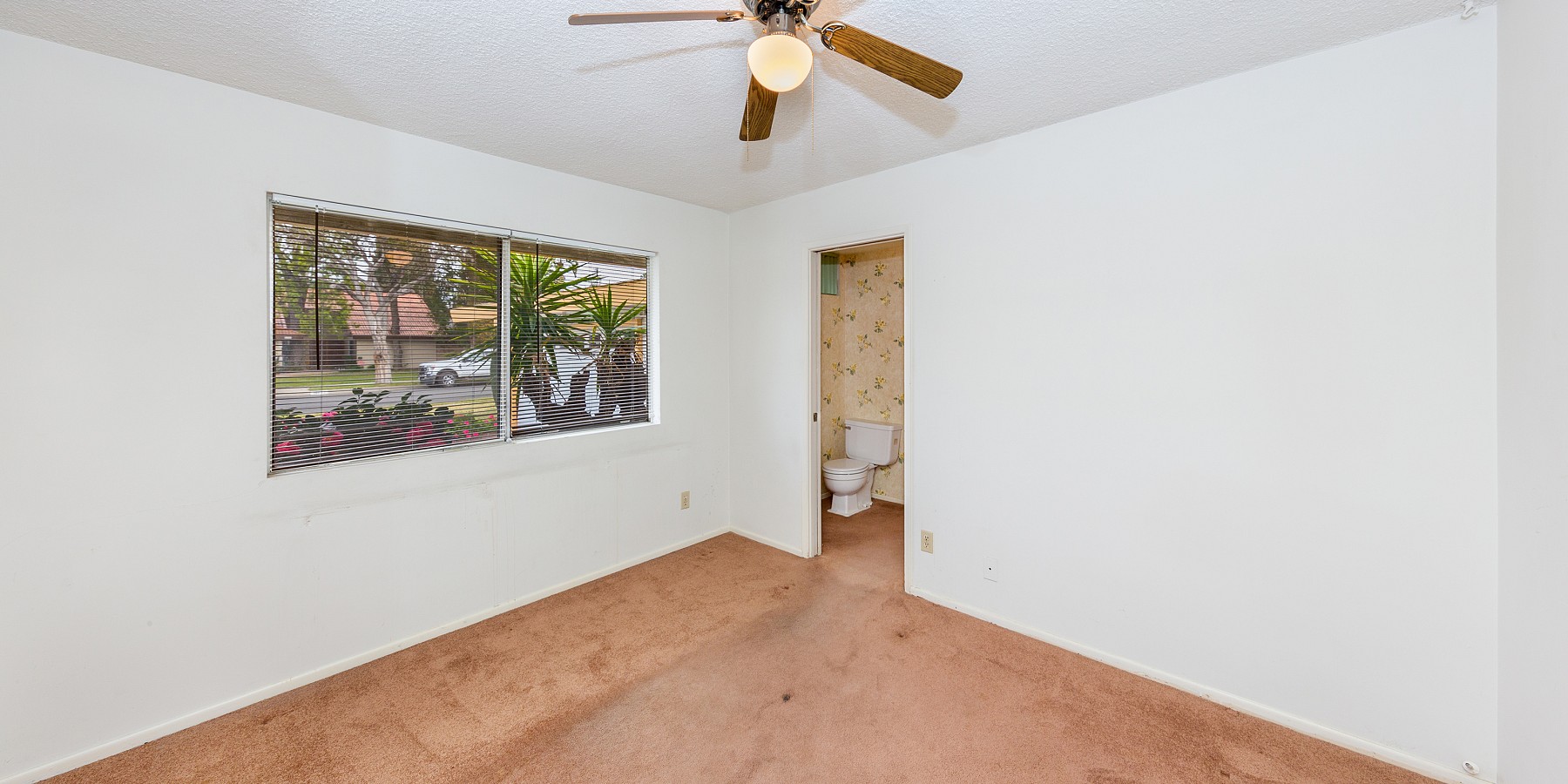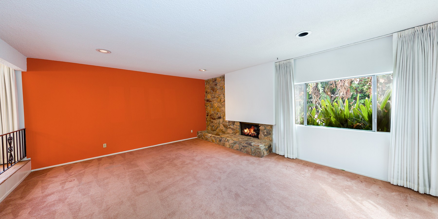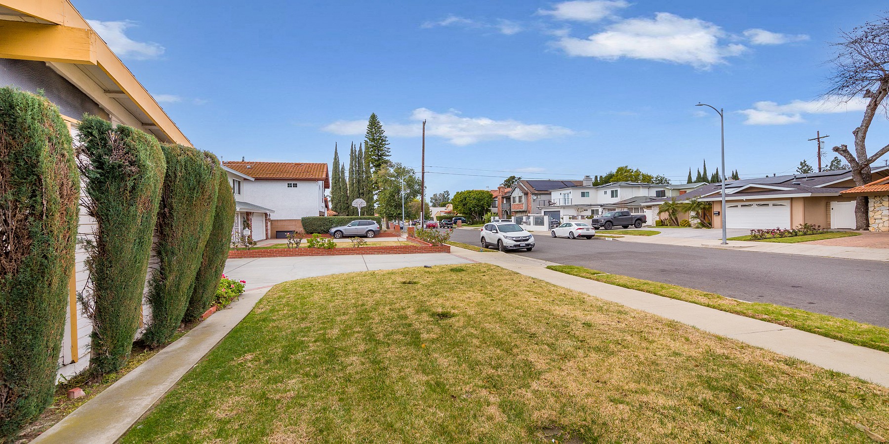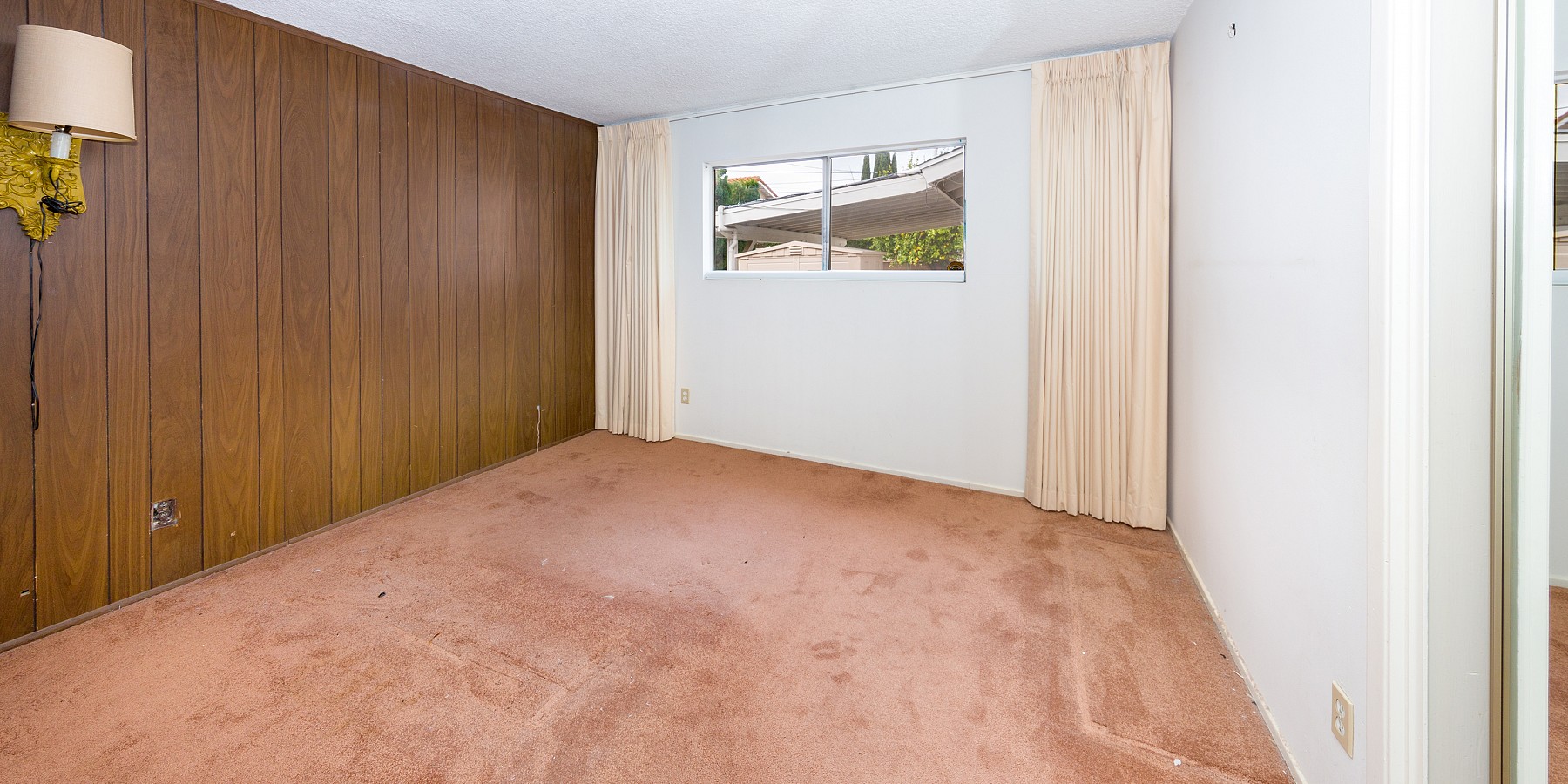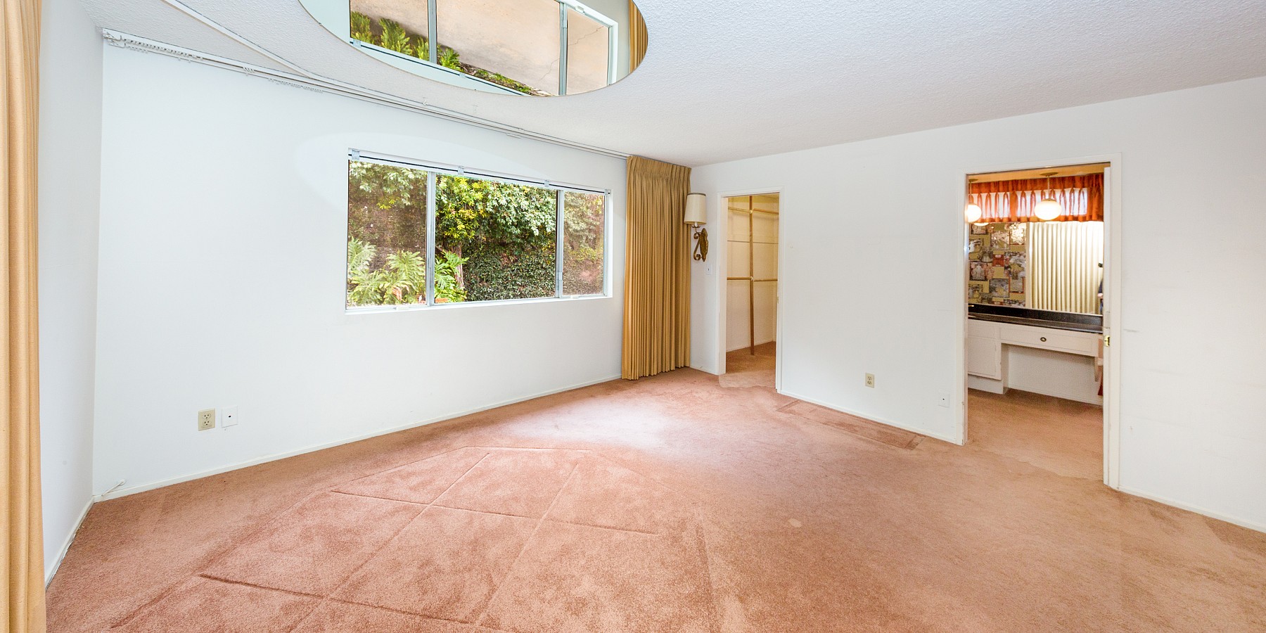 Rare opportunity for a 4 bedroom wide open single story floorplan. Kitchen, dining, living and secondary living are all open and provide the great room concept (way ahead of it's time for 1964). The home is in original (Vintage) condition and will require cosmetic updates throughout. The large living room has sliders to the rear yard and a stone centered fireplace. The primary suite features a recessed tub and shower plus a large walk-in, secondary bedrooms feature mirrored wardrobe doors. There is a shared bath and shared powder. Part of the garage was converted to an independent laundry room and two storage closets. Fantastic front yard with lawn area and curved driveway would lend itself to an ideal curb appeal home. Rear yard has loads of patio space and a beautiful pool with incredible Birds of Paradise sheltering the South wall. This is an ideal starter home or a contractor's dream.