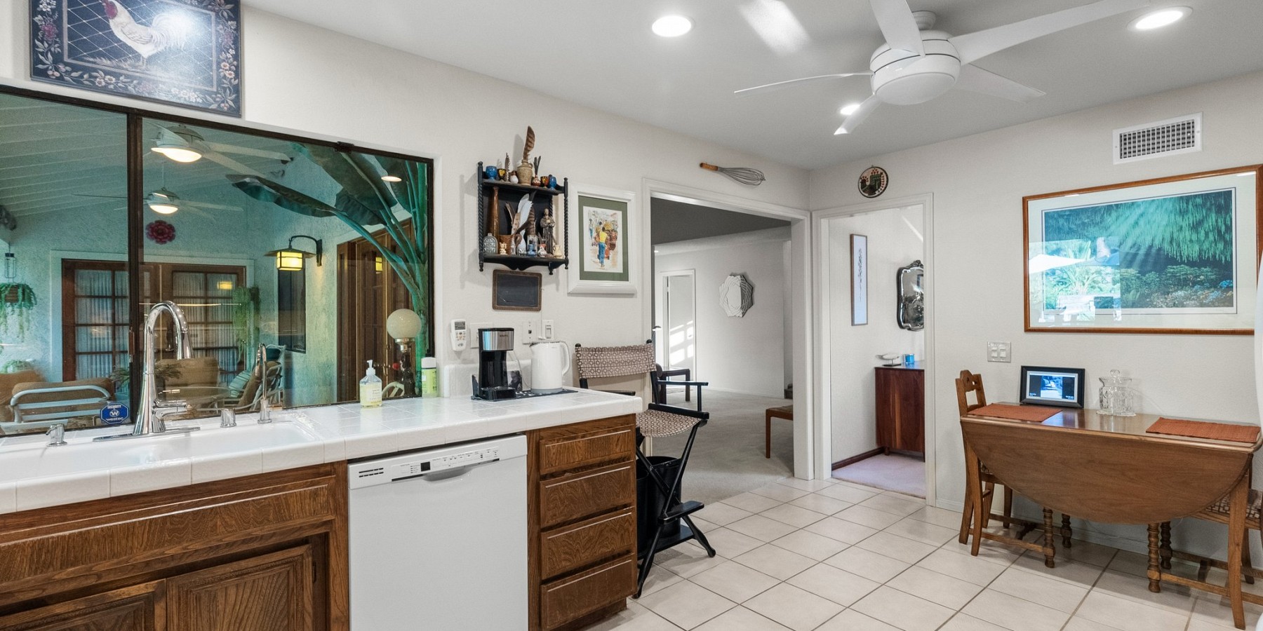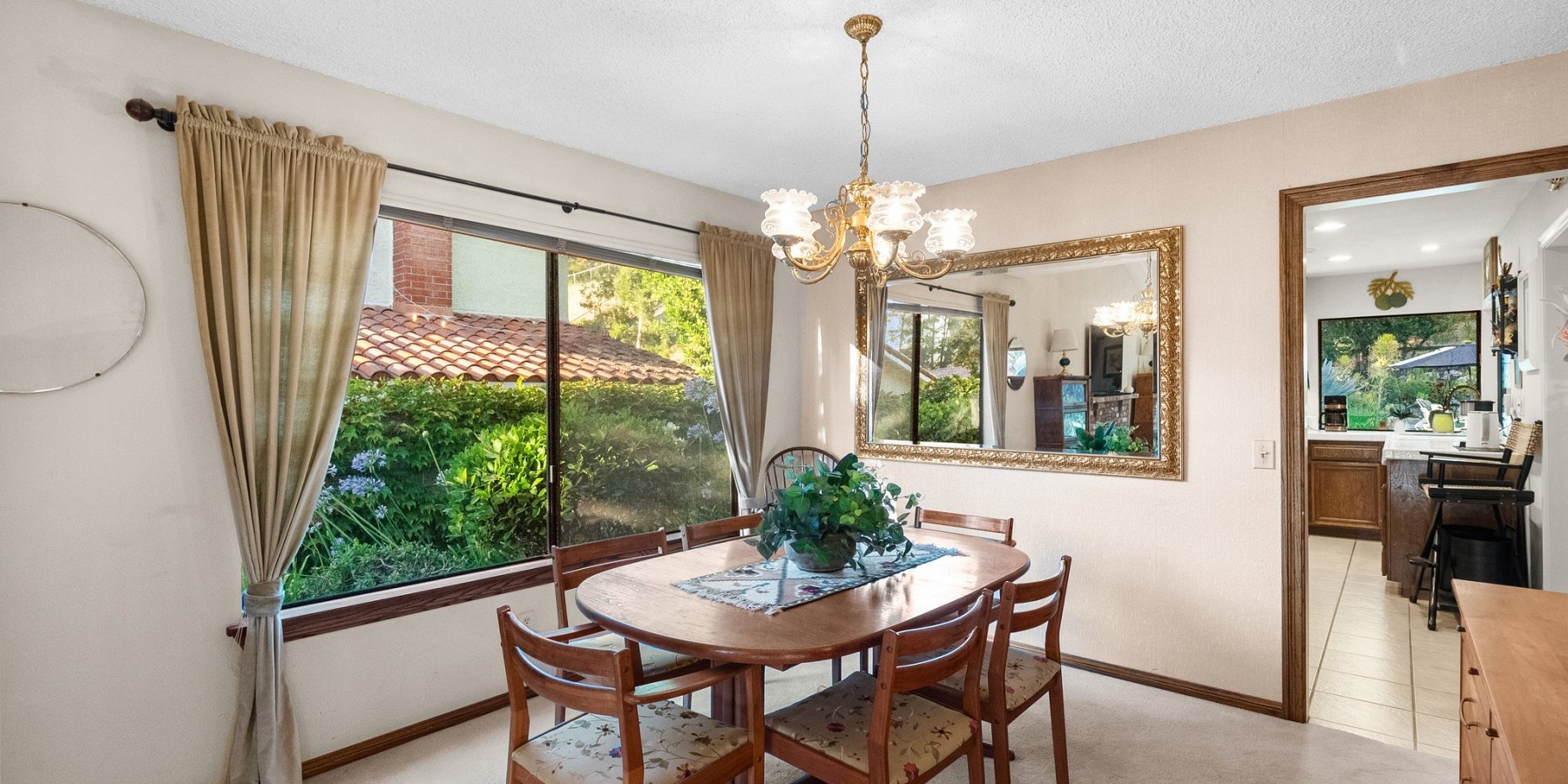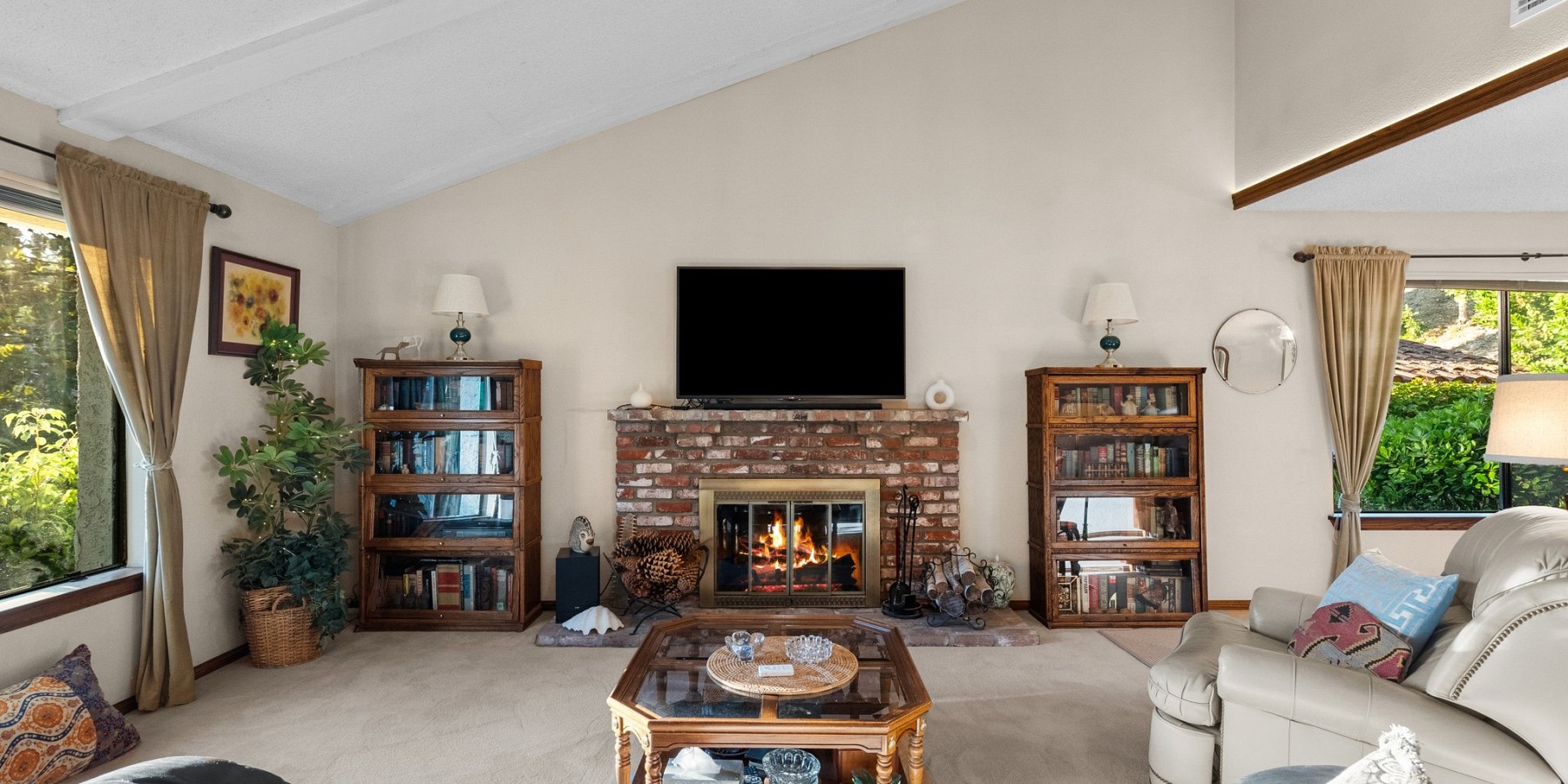 Oasis like backyard with incredible private setting. Huge lawn, pool, spa, lush landscaping beautifully maintained, mature trees, fruit trees, olive trees and large garden area. Single story with pitched beamed ceiling in living room and pitched in primary. French doors lead out to the gorgeous yard from living room and primary. Stunning succulent landscaped front entryway. Most of home is in original condition but very well maintained. One bath has been remodeled. Kitchen and living room windows view out to Saltillo tile covered patio. Large primary suite with walk-in and extra closet. Secondary bedrooms have lovely view windows and share the remodeled bath. Brick fireplace living room with shared dining area. Nestled at the top of Fountainwood with easy access to elementary and high school. Large roomy lots like this are very hard to find and make for the ideal outdoor California lifestyle.