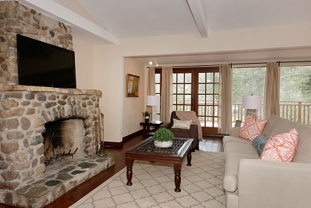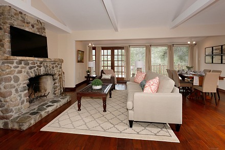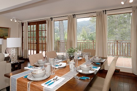 Standing on the top deck that runs the length of this home, you’ll know exactly what Hesse’s words mean,for you are truly in a sanctuary,surrounded by giant pines,oaks,sycamores – you’re in a magnificent tree house!