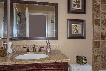 The granite kitchen with stainless steel appliances opens to a dining area and family room encircled with floor to ceiling windows showcasing the stunning mountain views.A separate formal living room offers beautiful views and a cozy fireplace.The backyard has both hardscape and grassy areas surrounded by mature foliage and again,highlighted by the mountain views.This home needs a little TLC and a little vision to make it your own.Bottom line:corner lot location,panoramic views and unrealized potential!