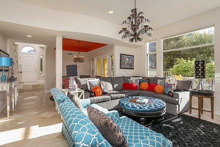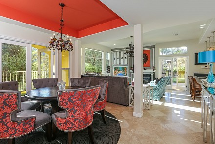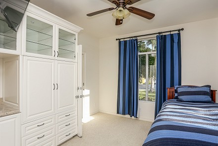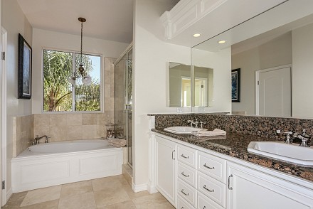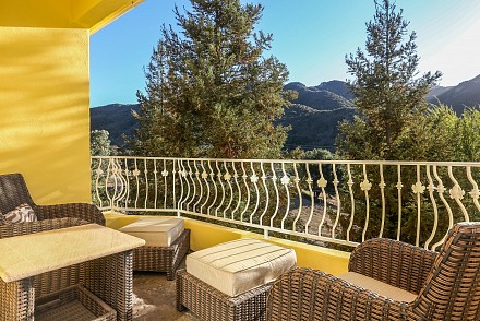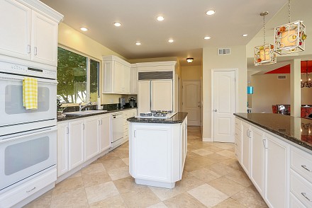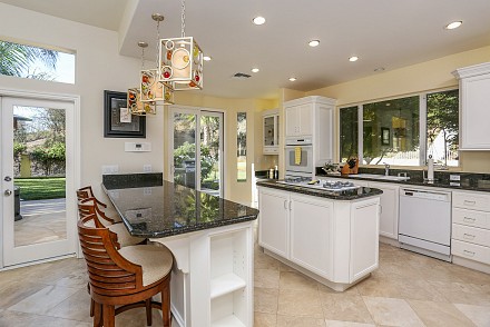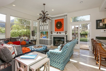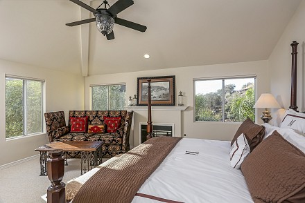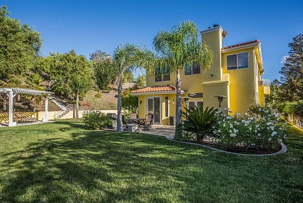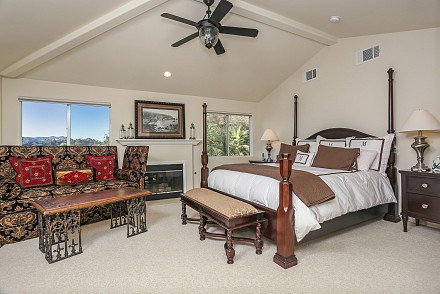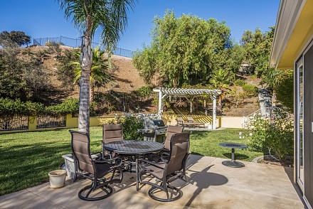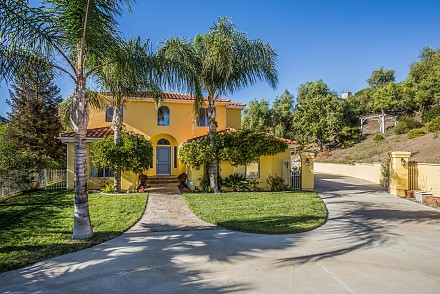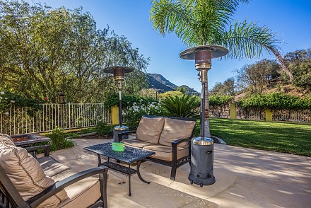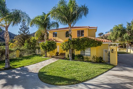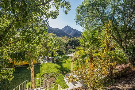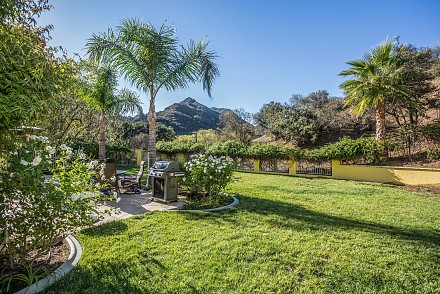 Words that will never be used to describe this property:cookie-cutter or standard. Words that fit perfectly:extraordinary or exceptional. Yes,it’s true that anyone fortunate enough to own a home in the Malibou Lake neighborhood probably has something picturesque and charming. This home,however,goes one,or two,or three steps further. First off, everything has been painstakingly renovated,in meticulous detail;to call it “turnkey” is an understatement. Just driving up the hill and entering the large gates and circular driveway is a hint of what is to follow. The entire acre is walled,ensuring full privacy,with the back facing south,straight on to the Santa Monica Mountains. On the right,a flight of steps leads to a sweet gazebo,while the back patio has a lovely outdoor entertainment area,as well as green space,and dozens of trees,including two massive palms and a weeping willow.