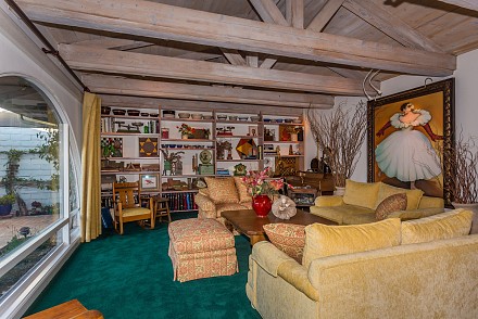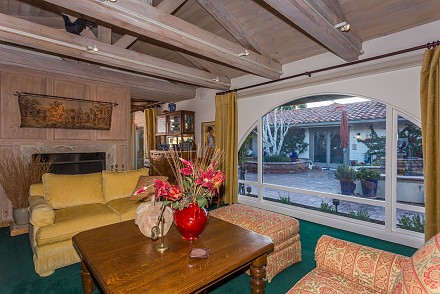 Just imagine; driving through the 1st neighborhood of Westlake Village,following the streets to the sweetest cul-de-sac,then stopping at the home with the huge arched doorway,two birch trees on either side of the brick pathway. Then imagine; a property where most of the rooms look out to a center courtyard,a courtyard brimming with surprises: hand-laid brick pavers,an old Spanish fountain embedded with hundreds of hand-painted tiles,a charming swing under a pergola,an outdoor kitchen custom designed with more stunning tile work. No,you are not in Barcelona; yes,you are in Westlake Village,about to be dazzled with an array of unique features that make up one of the most picturesque properties in a neighborhood already known for its scenic homes. To highlight just a few: the kitchen,completely renovated to satisfy the most ardent chef,with 6-burner Wolf range,stainless steel counters and farm sink,Bosch dishwasher,and Sub-Zero fridge; yet still retaining the flavor of this hacienda,with its brick-archway,barn doors concealing the pantry,and custom open-beamed ceilings. The adjacent family room,with its fireplace and soft-grey molding looks out to the courtyard,through French doors.