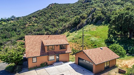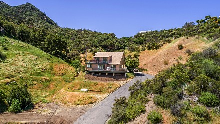 The home and oversized, detached garage sit on three acres, with the other two adjacent acres(300K) offering the potential for horses, a pool, barn, even a second home; which all borders the Santa Monica Mountains Conservancy, and adjacent waterfall.