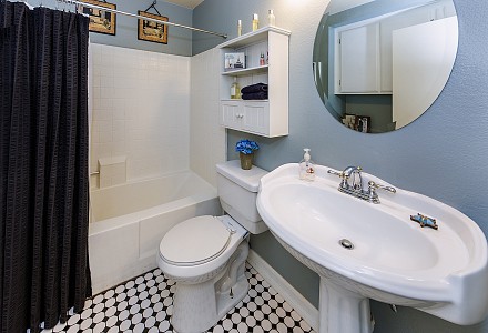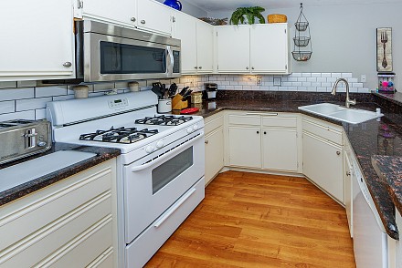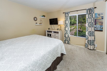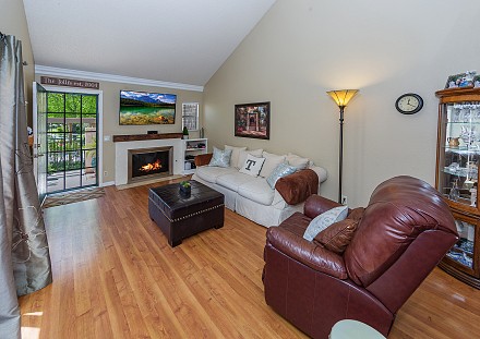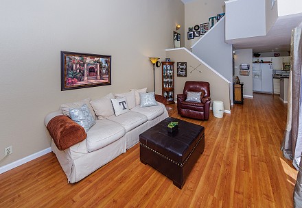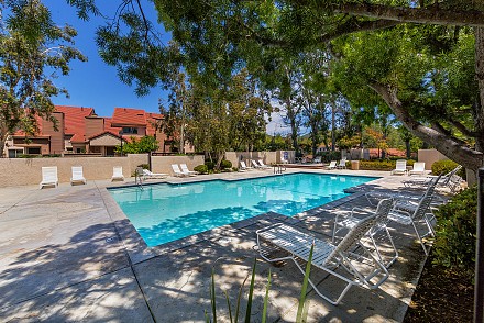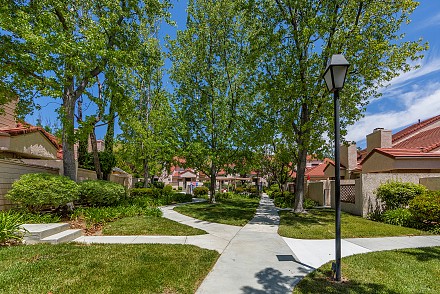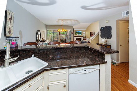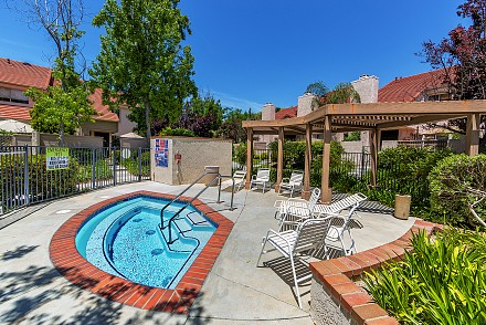 No one if front or back! Mountains in the rear, Hot tub in the front. Great location at top of development with two car garage. Granite kitchen, tile back splash, laminate flooring, light and open downstairs with great patio, 3 beds up with master having mountain view, mirrored wardrobe closet and 2 secondary beds, sharing updated bath. Great community, pool, park and jacuzzi. Easy access to the park and convenient exits out both directions.
