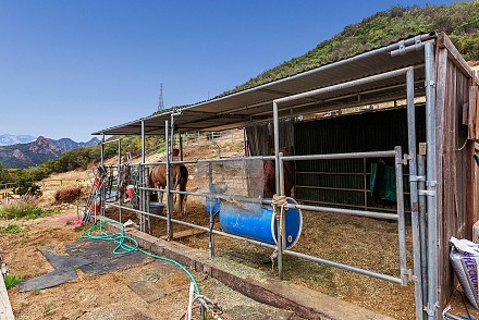 Most everyone knows the term, “Gentleman Farmer,” a person who farms mainly for pleasure rather than profit. How about living the life of a “Gentleman Rancher,” with horse shelters for your favorite mares, complete with a misting system, tack shed, Litton lighting, and miles of trails in Malibou Creek for hiking, mountain biking, and of course, horseback riding. No need to trailer in your horses, which most residents have to do when going for a ride.