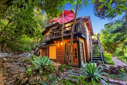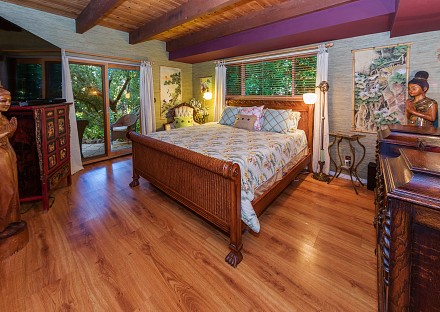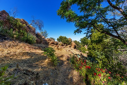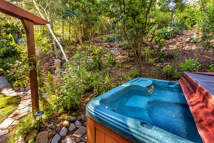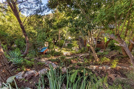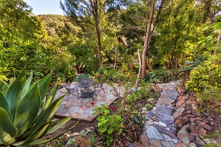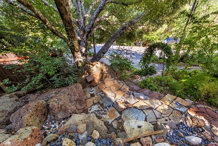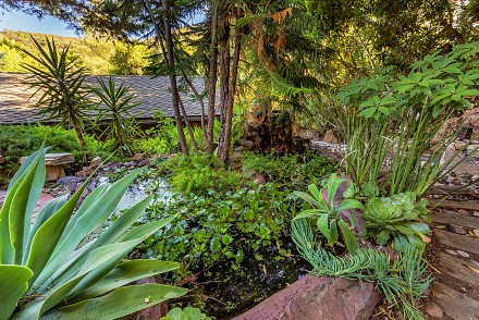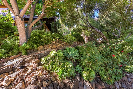 Envision a property filled with trees: birch, crepe myrtle, bamboo, coral, California native oaks, along with 20-30- specimens of cacti from around the world. A white mulberry tree attracts 30 varieties of birds!