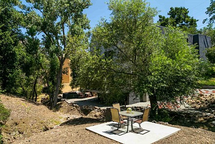 The tri-level, 3 bedroom, 2 ½ bath home sits on a triple lot, dotted with dozens of mature oak and pepper trees, as well as drought-resistant landscaping. With stunning views of the Santa Monica Mountains, the setting guarantees to inspire the artist in us, whether meditating in the Zen garden or hiking through the hill and canyon trails. A approx 400 sq. ft. climate-controlled building adjacent to the home offers possibilities: storage area, music/art studio, exercise room.