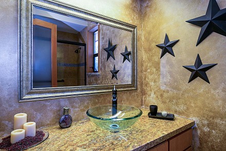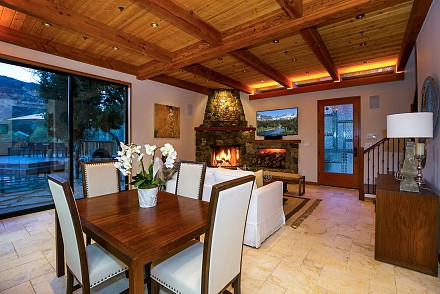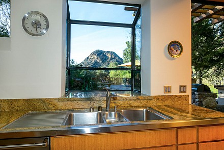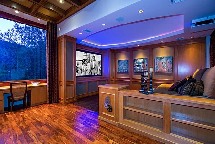 The crème de la crème, however, might just be the theater. With its custom woodwork, fireplace, and wet bar with sink, there is never an urge to drive to the neighboring movie house – it’s all here! Nothing is “forced” in this splendid home. It’s all one with nature, a gracious, picturesque masterpiece – time to surrender to its eternal magic!