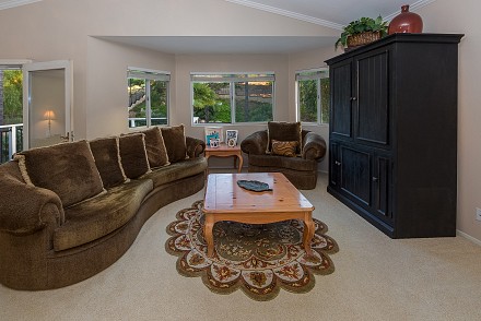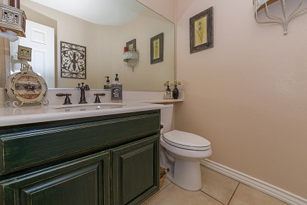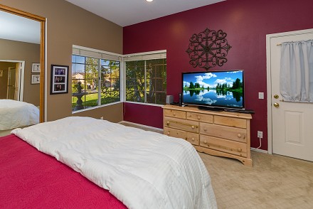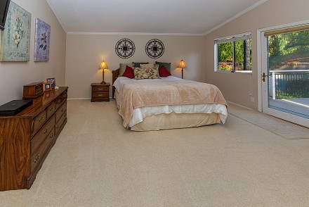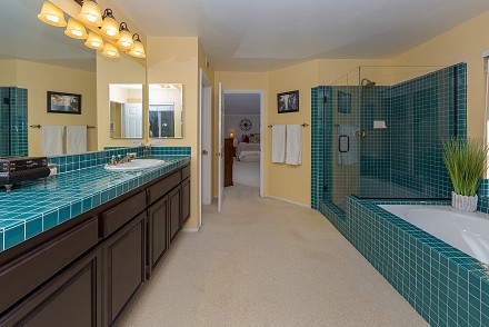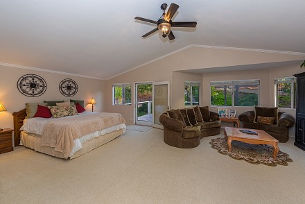 The second floor, with three expansive guest rooms, is bright and airy. Two of the bedrooms share a large bathroom, with double-sinks, and the third bedroom has its own private bath. The master suite has everything: vaulted ceilings, lovely sitting area overlooking the patio, huge shower, soaking tub, and a private balcony overlooking the hills!