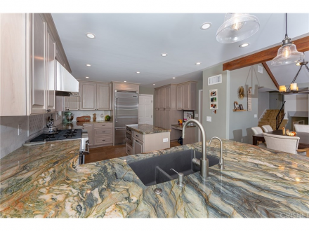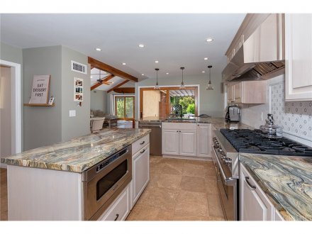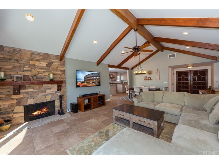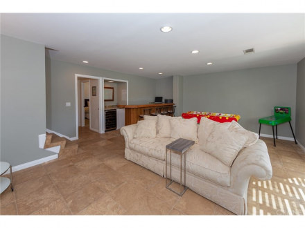 Enter to 9+ foot vaulted ceilings with beautiful wood beams, a ledger stone fireplace and travertine flooring. Then there is the kitchen. A cooks dream. All stainless-steel Viking and Thermador appliances, custom cabinets, and marble tile back splash with quartzite counter tops. The Lower level has a large family room complete with bar. A Large downstairs bedroom and bath offer sanctuary for your guests.