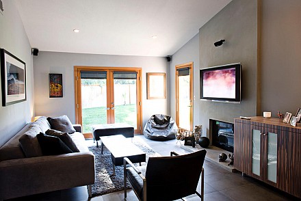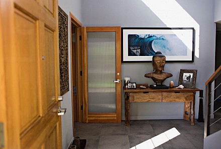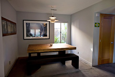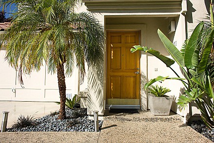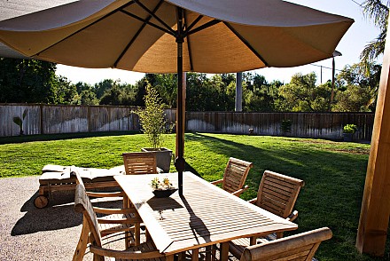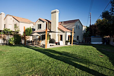 Superb property on extra large flat lot. Unique 3 bedroom, 3 bathroom two story single family home with beautiful upgrades including tile, bamboo flooring, interior custom doors, custom window treatments, custom lighting and fixtures. Kitchen features cesarstone counters, Kitchen Aid & Bosch stainless appliances, surround sound speakers, custom built in breakfast nook with view out to backyard. Living room has modern fireplace, high ceilings, Bose speakers and French doors that lead out to lush fenced yard. Great master bedroom with cathedral ceilings and super custom master bathroom.