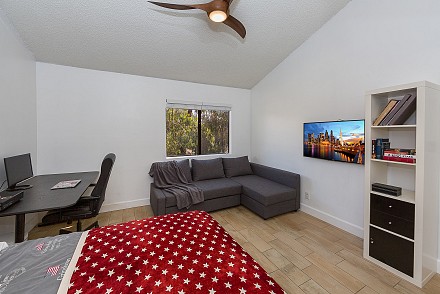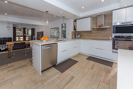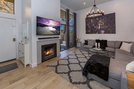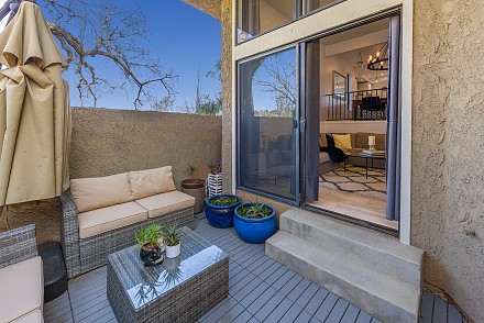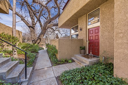 A little bit cozy, a little bit industrial – no matter the mood, the smart design and updates are guaranteed to satisfy the pickiest homeowner. The location is ideal, with community pool, parks, trails, riding arenas. The first level is reminiscent of an urban loft:vaulted ceilings, massive skylight, and open living, dining, and kitchen areas. Designer pendant lighting and Long ceramic tile throughout adds to that sleek, modern feel, accented by stainless steel appliances and Kasker quartz kitchen island and bar. When you're in the mood for cozy, sit by the charming living room fireplace, or enjoy brunch on the private patio area. The kitchen level also has a separate laundry room and ½ bath. The master bedroom almost feels like being in a treehouse, with a massive oak right outside the adjoining deck. The en suite bath has been meticulously renovated, with 2 vanities and designer cabinetry. All 3 bedrooms have vaulted ceilings, with a stunning guest bath:marble counters and tile, state-of-the-art grey cabinetry. With over 1500 sq. ft. of space and a 2-car direct access garage, little is left to be desired. Whether you want that ''peaceful easy feeling of a laidback country song,'' or want to ''sing my rock n' roll, all night long,'' this property has it all!