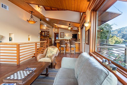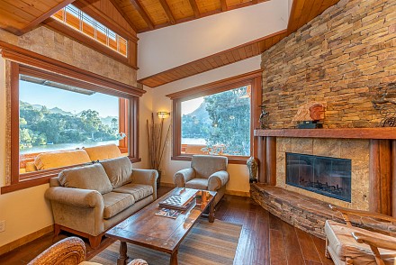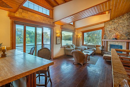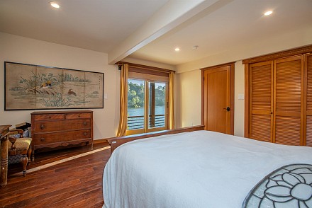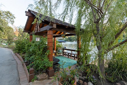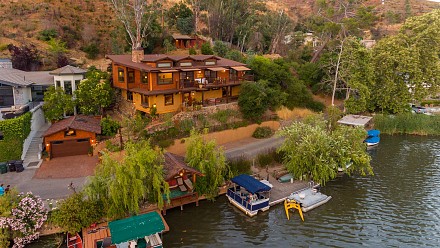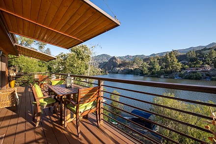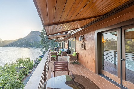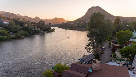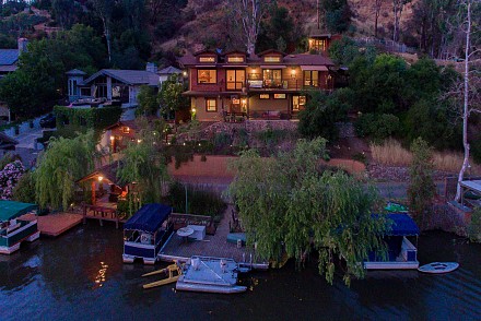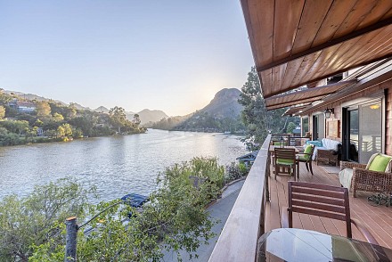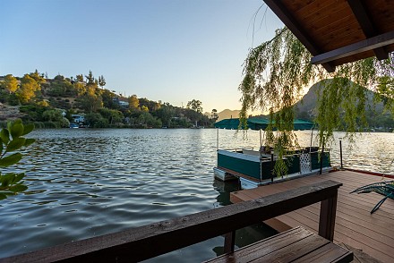 If you believe, as painter Claude Monet did, to "Study nature, love nature, stay close to nature, it will never fail you," then here is your true home – at the shores of Malibou Lake. This is exactly how residents live their lives:in harmony with the water & mountains. Rebuilt in 2014 with this in mind, the home takes advantage of modern living & jaw dropping views, yet retains the charm of "bygone days." Asian walnut and travertine floors below & American Walnut floors above. A stone fireplace anchors the living area, open to a family room, separated by a bar/seating spot.The adjacent kitchen, with high ceilings, center island, and stainless appliances, is irresistible for any "chef," & downstairs bedroom and bath is convenient for guests.The 2nd level master, with bath & concrete walk-in shower, overlooks some of the best west-facing lake views. A 2nd guest room & bath is also on this floor, along with a huge deck & multiple seating areas. Windows have either onyx or travertine bordering the window casements. 2 decks afford endless entertaining possibilities & a detached room makes a perfect study. A covered dock has easy access for year round water fun. Community pool, tennis & clubhouse. Built to current fire & earthquake codes. Las Virgenes Schools