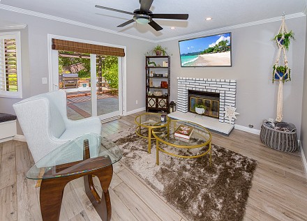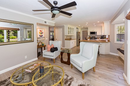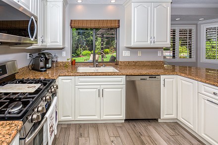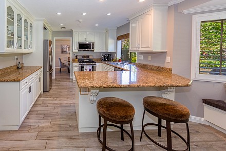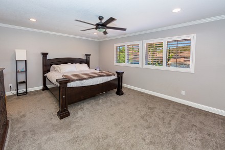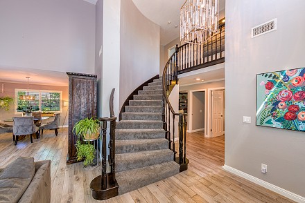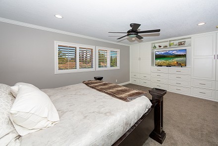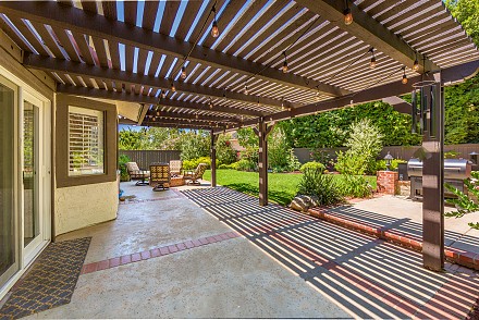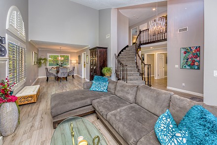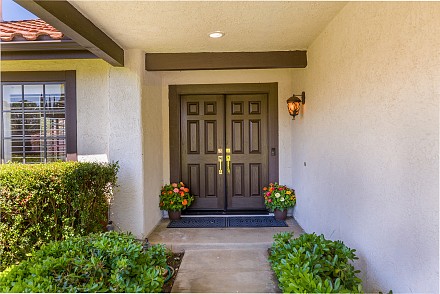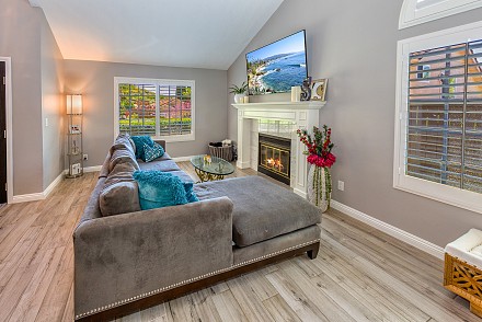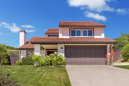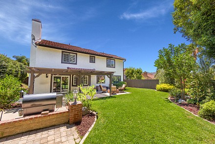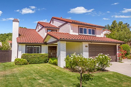 Instant curb appeal draws you to this beautiful home located in prestigious Wood Ranch. This two story home offers plantation shutters, crown molding, recessed lighting, gorgeous porcelain flooring throughout the main floor with new carpet on the upper level. All bedrooms are spacious and inviting. Large master suite includes an updated bath, new wall mounted closet cabinetry and large walk-in closet. Downstairs bedroom currently being used as pilates/spin room. Enjoy summer BBQs in this large private, peaceful backyard perfect for entertaining or just relaxing. Outdoor living at its finest with lush landscaping, fire pit and pavers. Don't miss seeing this Wood Ranch gem.