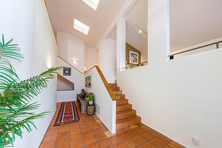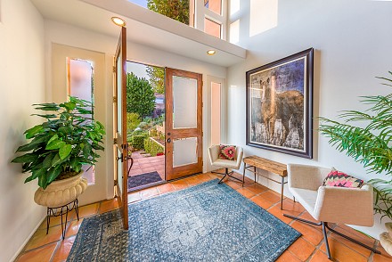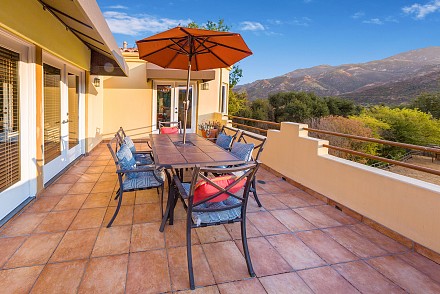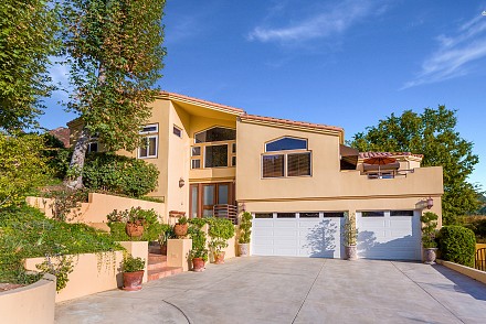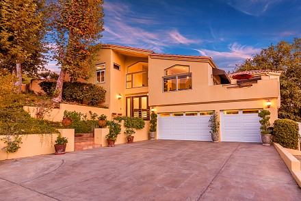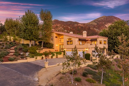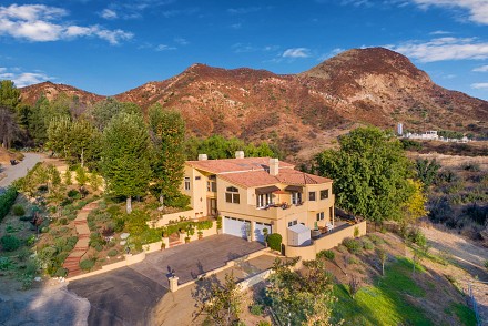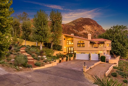The interior is an architectural dream :sweeping staircase, open lofts, skylights, Saltillo tile, & walls angling to capture every hill, every bit of sunlight. The great room, with Limestone fireplace, double set of French doors, & vaulted ceiling, leads to a large patio. An elegant dining room beckons, with mountain views & adjacent patio. Just beyond, the chef's kitchen delights: granite counters, custom cabinetry, breakfast area, coffee bar, and charming office nook. The master bedroom, with fireplace, has direct access to the pool, as well as soaring ceilings, walk-in closet, and renovated bathroom. A junior master suite with attached sunroom is on the 2nd level, and the lower level is complete with 3 other guest bedrooms. All 4 1/2 bathrooms show the creativity that went into the renovations, as each is uniquely designed. With nearby state & national parkland, Las Virgenes Schools, and a short drive to beaches & 101 freeway. This is the perfect time to create a lifestyle that thrills and a future that ensures contentment.